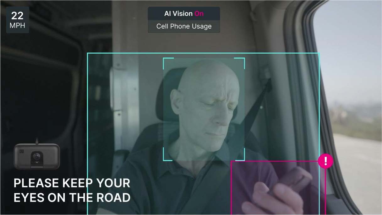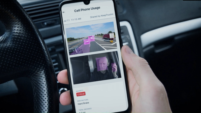 - Driver on a cell phone tracked by KeepTruckin AI Dashcam with Ambarella tech.