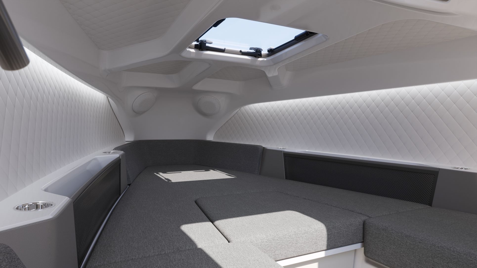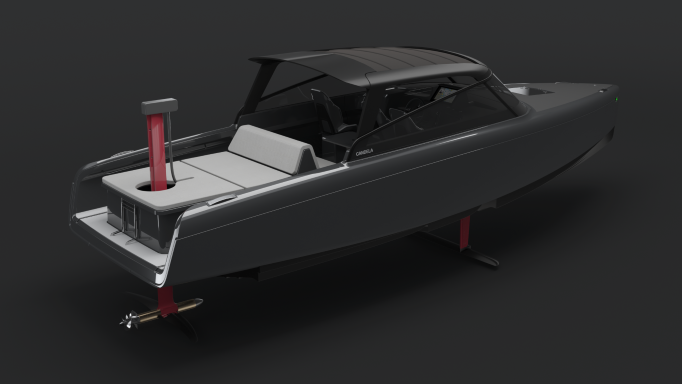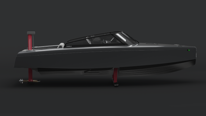 The C-8 is designed to be a totally silent motorboat. There’s no transmission noise and no sound from waves hitting the hull, enabled by the foil system. Only faint wind noise reminds riders that they’re cruising at 30 knots.