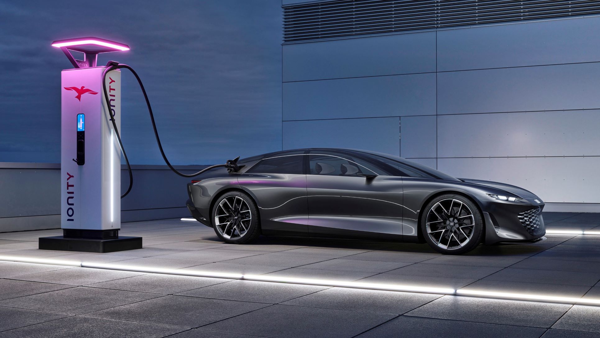 As with Audi’s current e-tron GT, the electric drive system uses 800-V technology for up to 270 kW fast-charging. At peak charging, just 10 min can net more than 300 km (186 mi) of range. In less than 25 min, the battery can be charged from 5% to 80%. The range can be more than 750 km (466 mi), depending on the selected drive system and power output.
