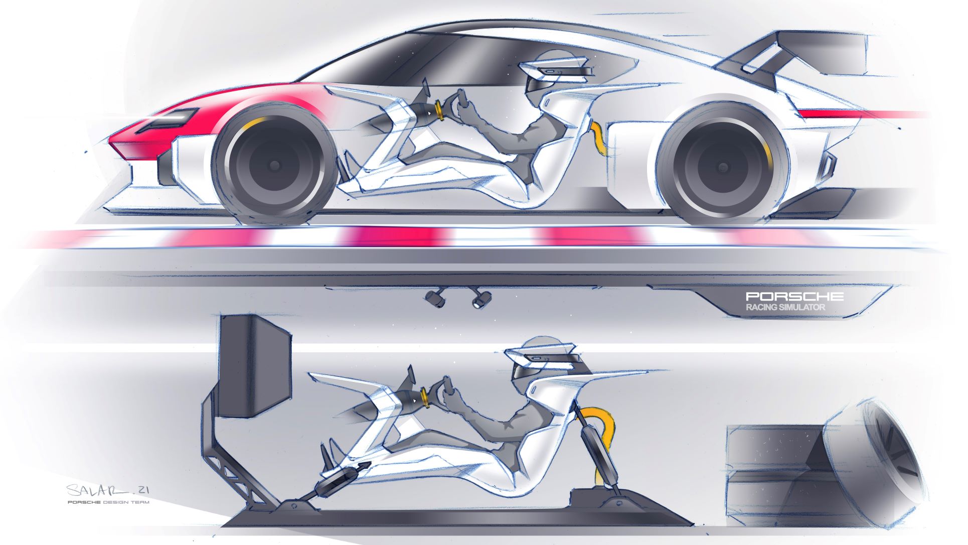 - Porsche Mission R concept interior and esports sketch.