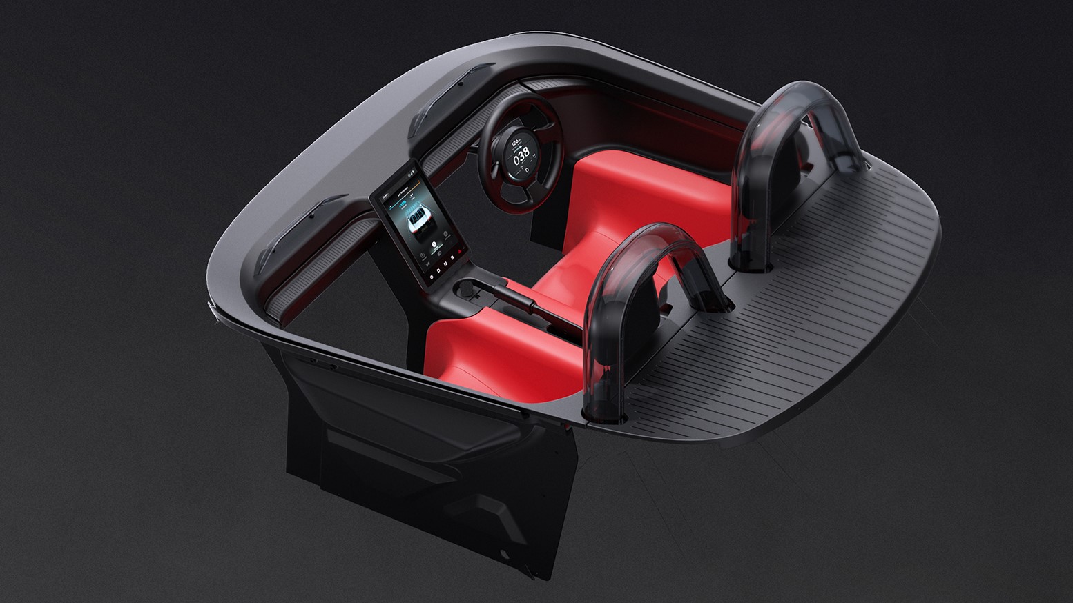 Aiming to keep the focus on driving and the road ahead, Conjure designed a 5-in, self-leveling, circular, steering-wheel-mounted display that shows key information such as range, weather, and other relevant driving information. The driver’s display and a 10-in touchscreen in the middle of the cabin are run by a single computing unit running AAOS (Android Automotive Operating System). Virtual 3D real-world performance and aerodynamic views update the driver and coach to maximize range based on conditions.