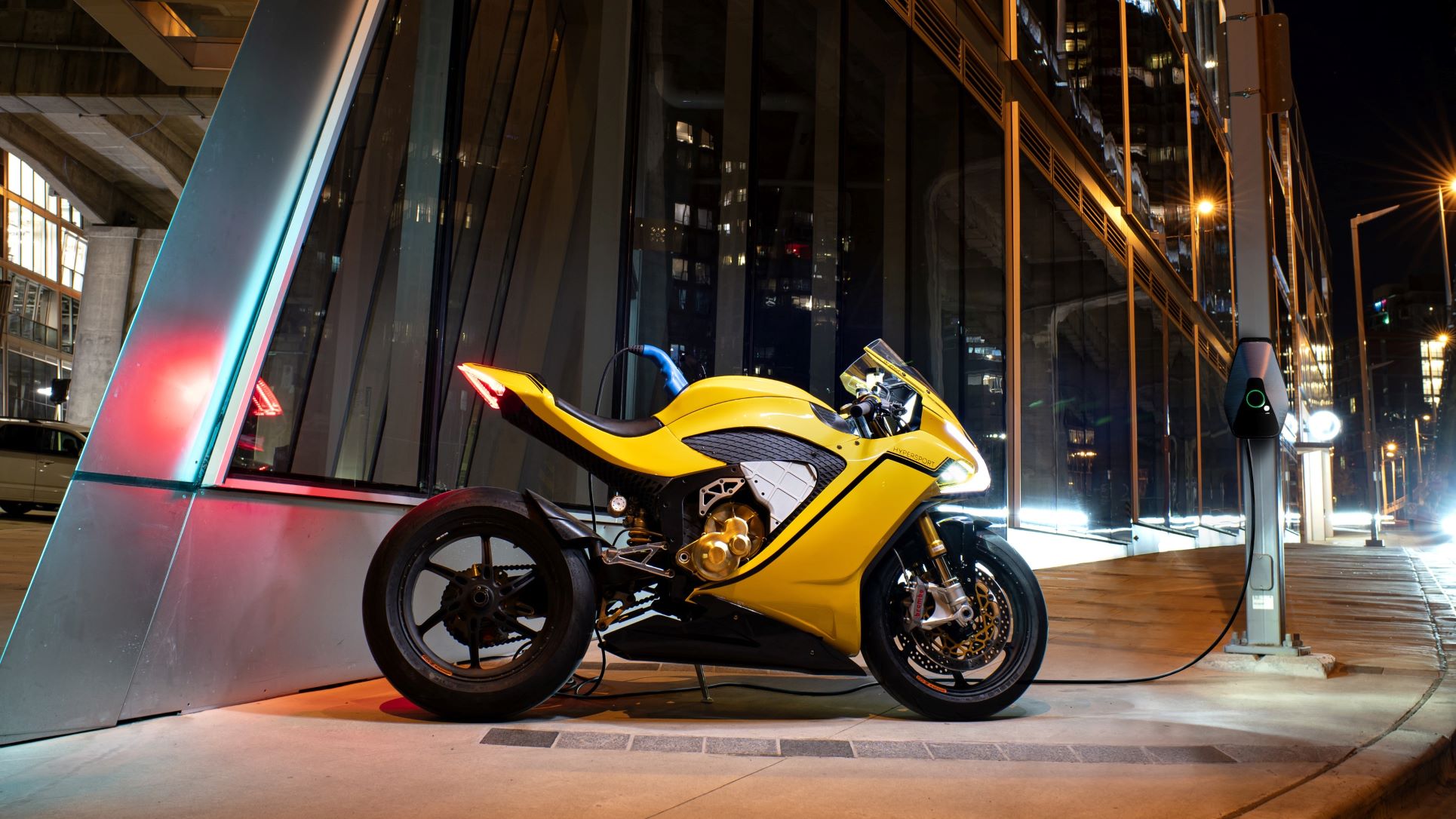 The total weight of the HyperSport at 440 lb (200 kg) is close to “the best motorcycle in the world” and gasoline-fueled Ducati Panigale at 436 lb (198 kg) and compares favorably with the electric competition of Energica Ego at 616 lb (279 kg), Harley Livewire at 549 lb (249 kg), and Zero SRF at 498 lb (226 kg).