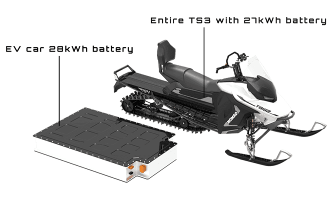 - Taiga power-to-weight ratio is optimized with small form factor battery pack.