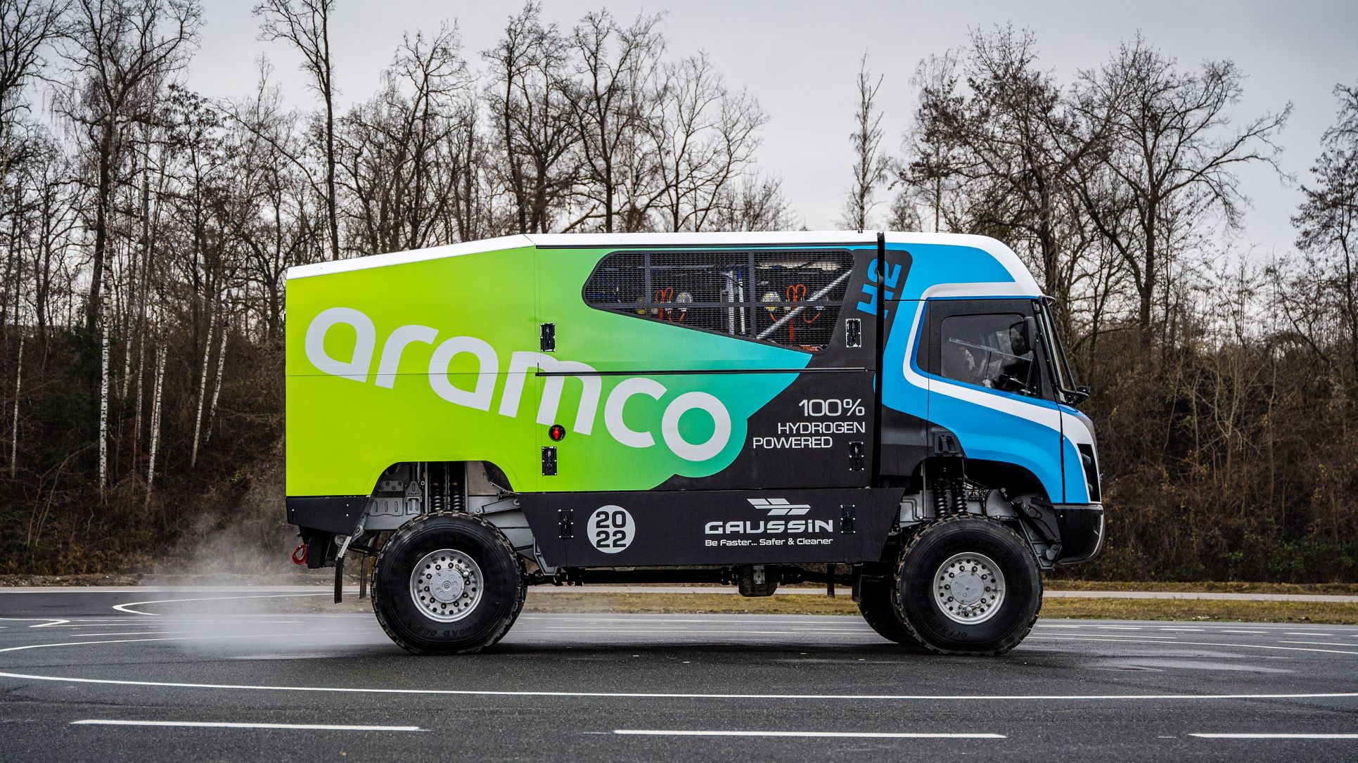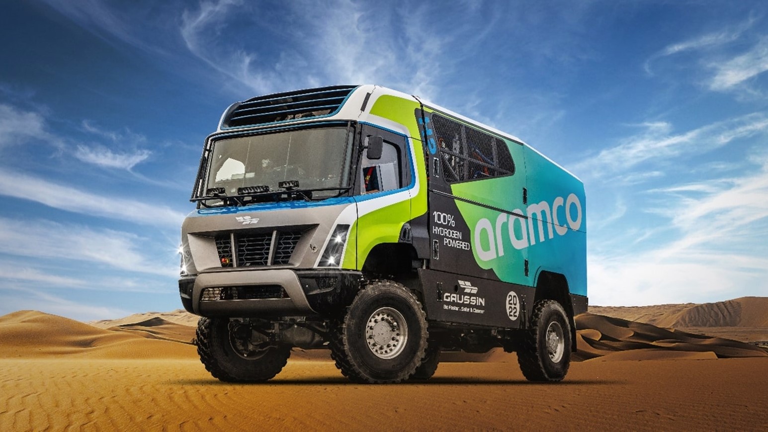 - Gaussin H2 racing truck for the Dakar Rally is supported by Aramco.