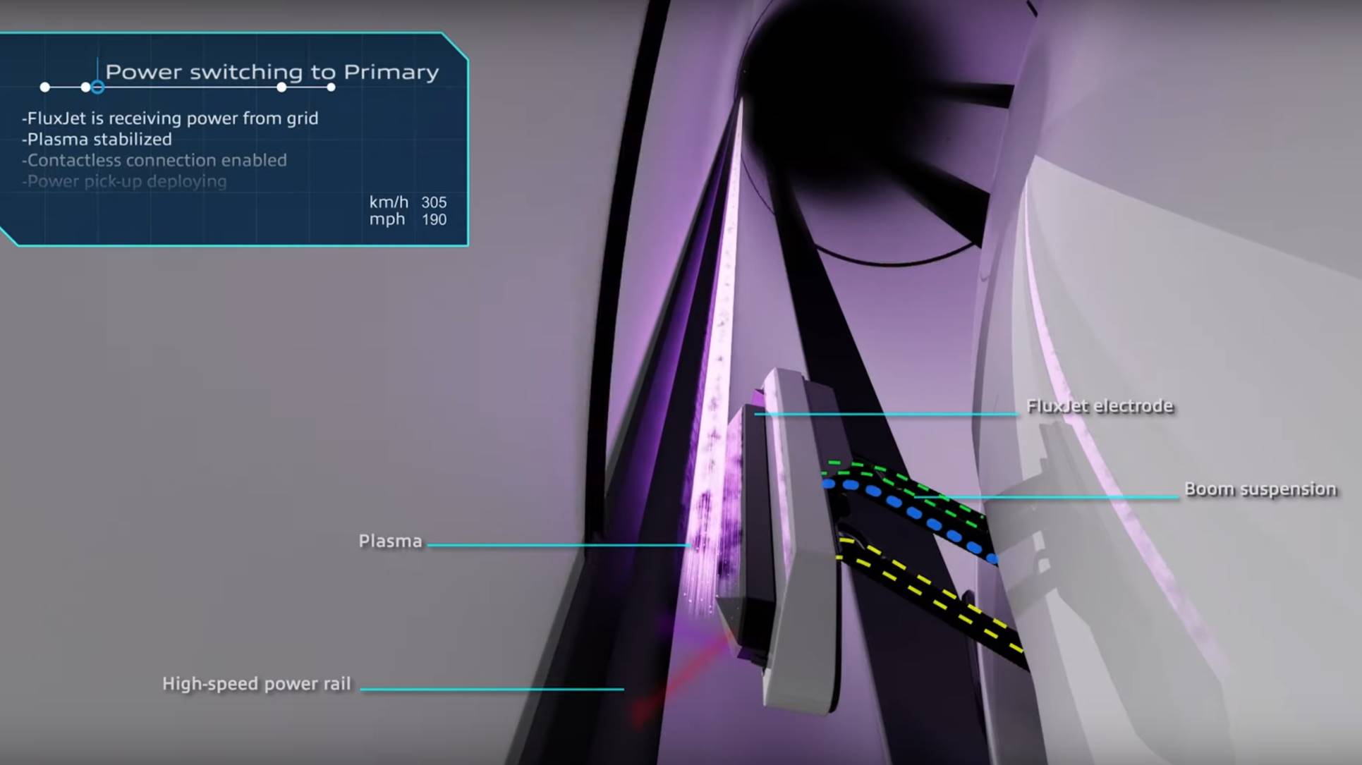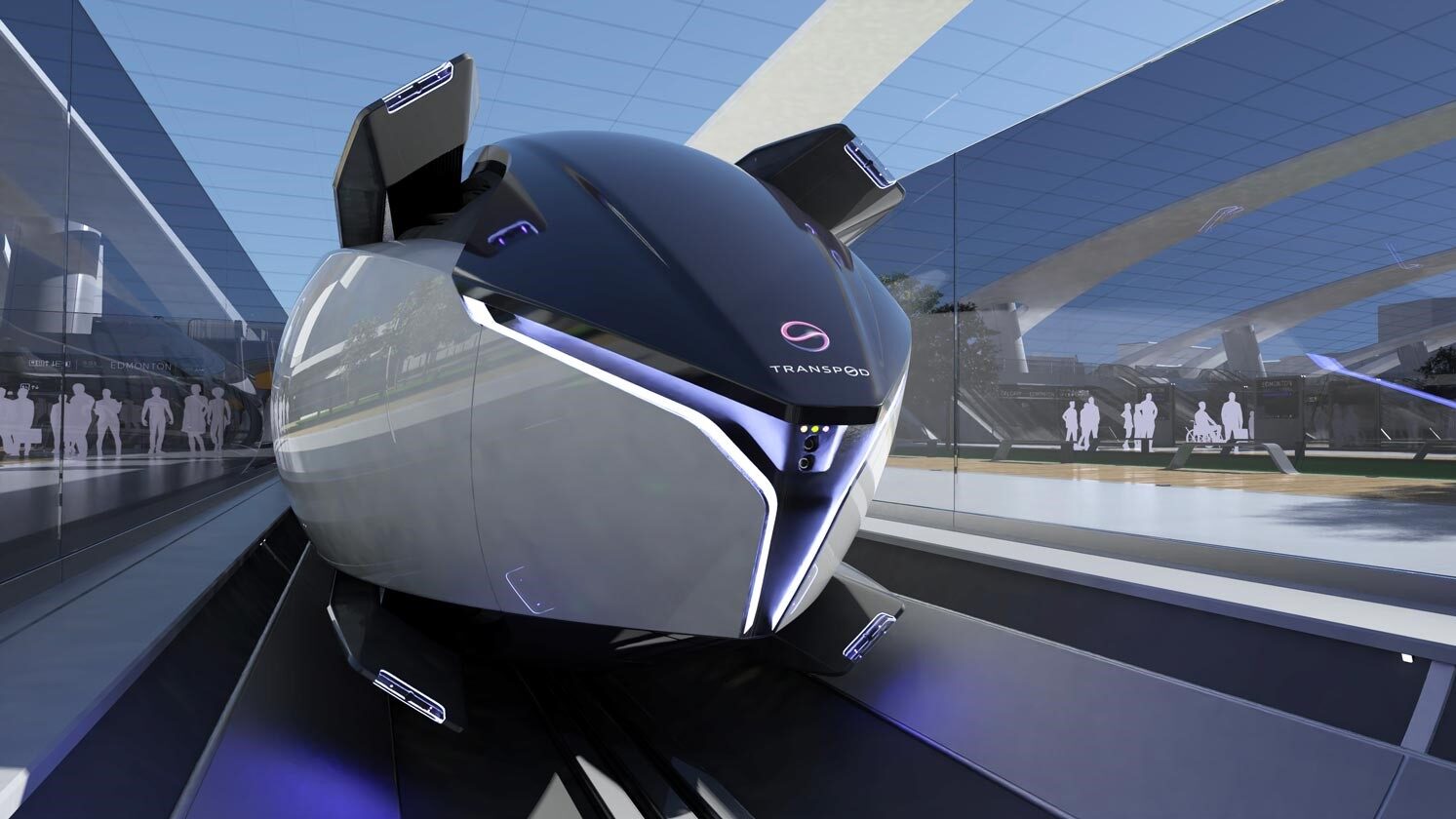 - TransPod FluxJet vehicle travelling at ultra-high speed.