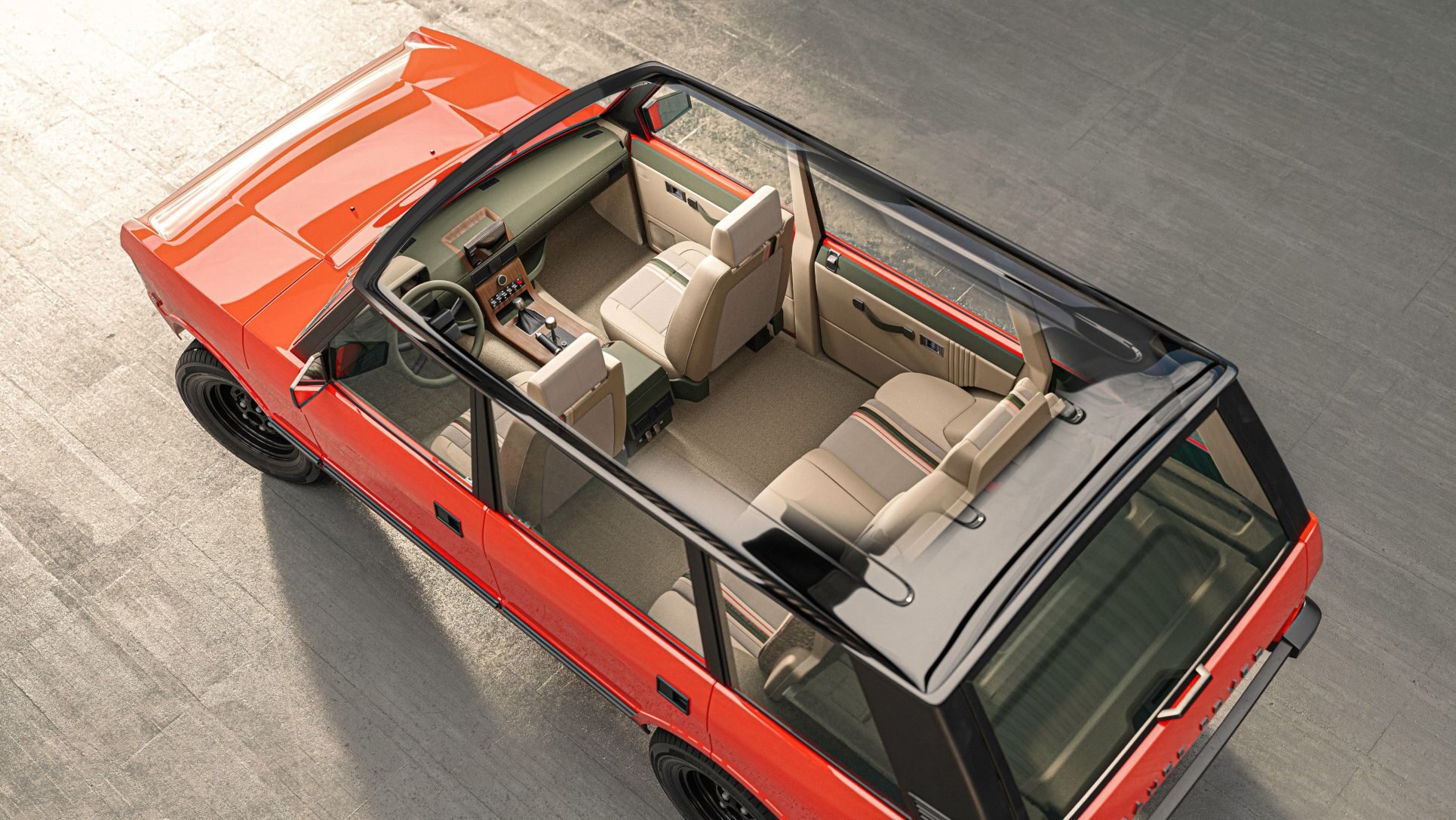 - Lunaz Range Rover Classic EV conversion in open Safari Country configuration.