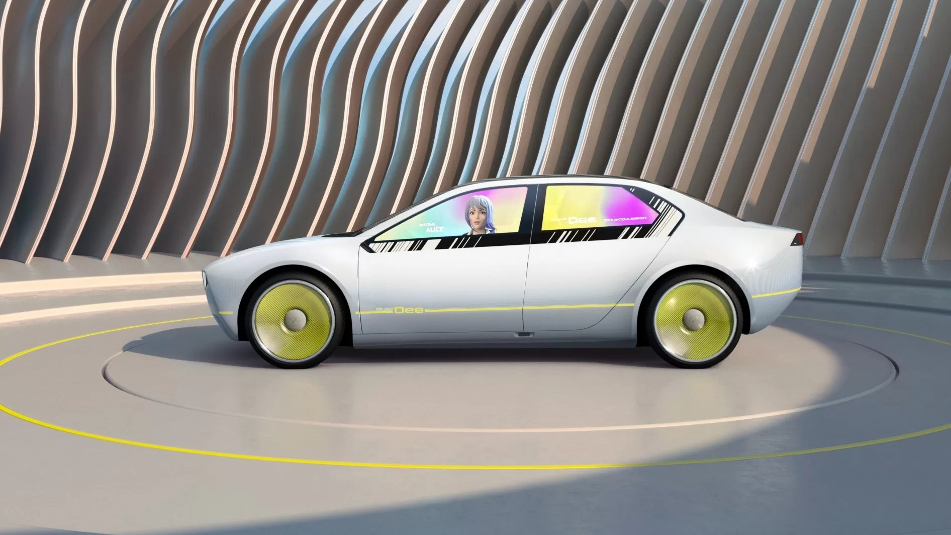- BMW i Vision Dee concept with projected avatar.