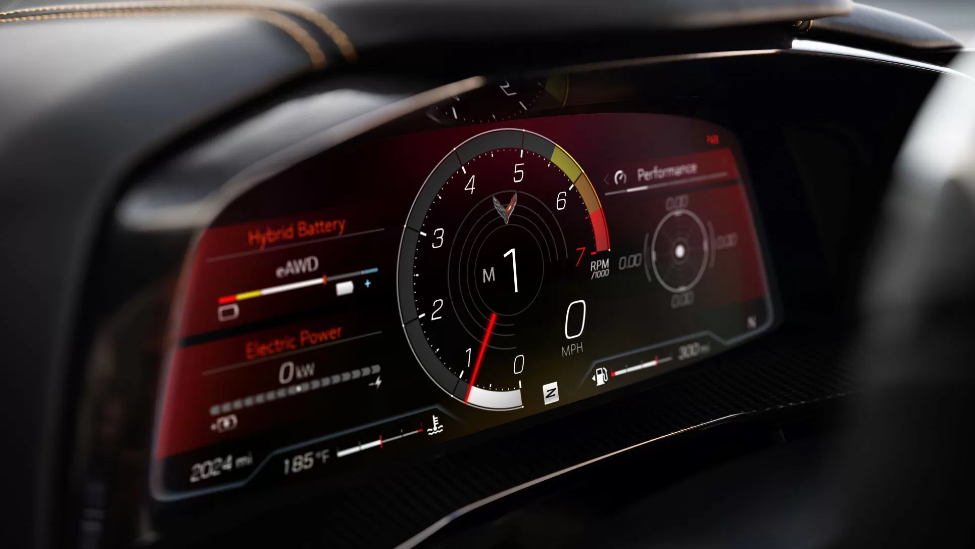 - Chevrolet Corvette E-Ray hybrid driver display.