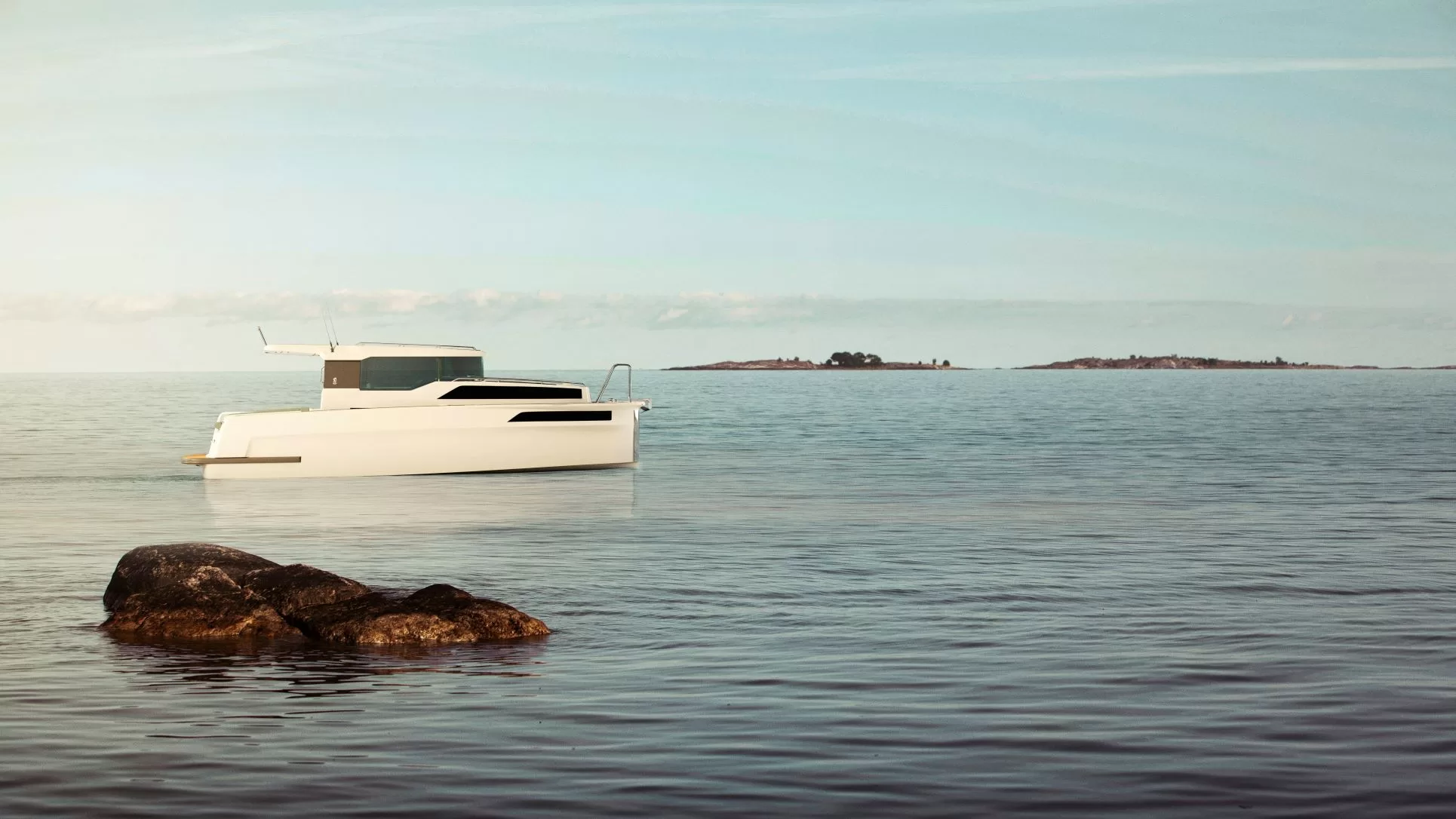 - Juva e/y 30 render on the sea.
