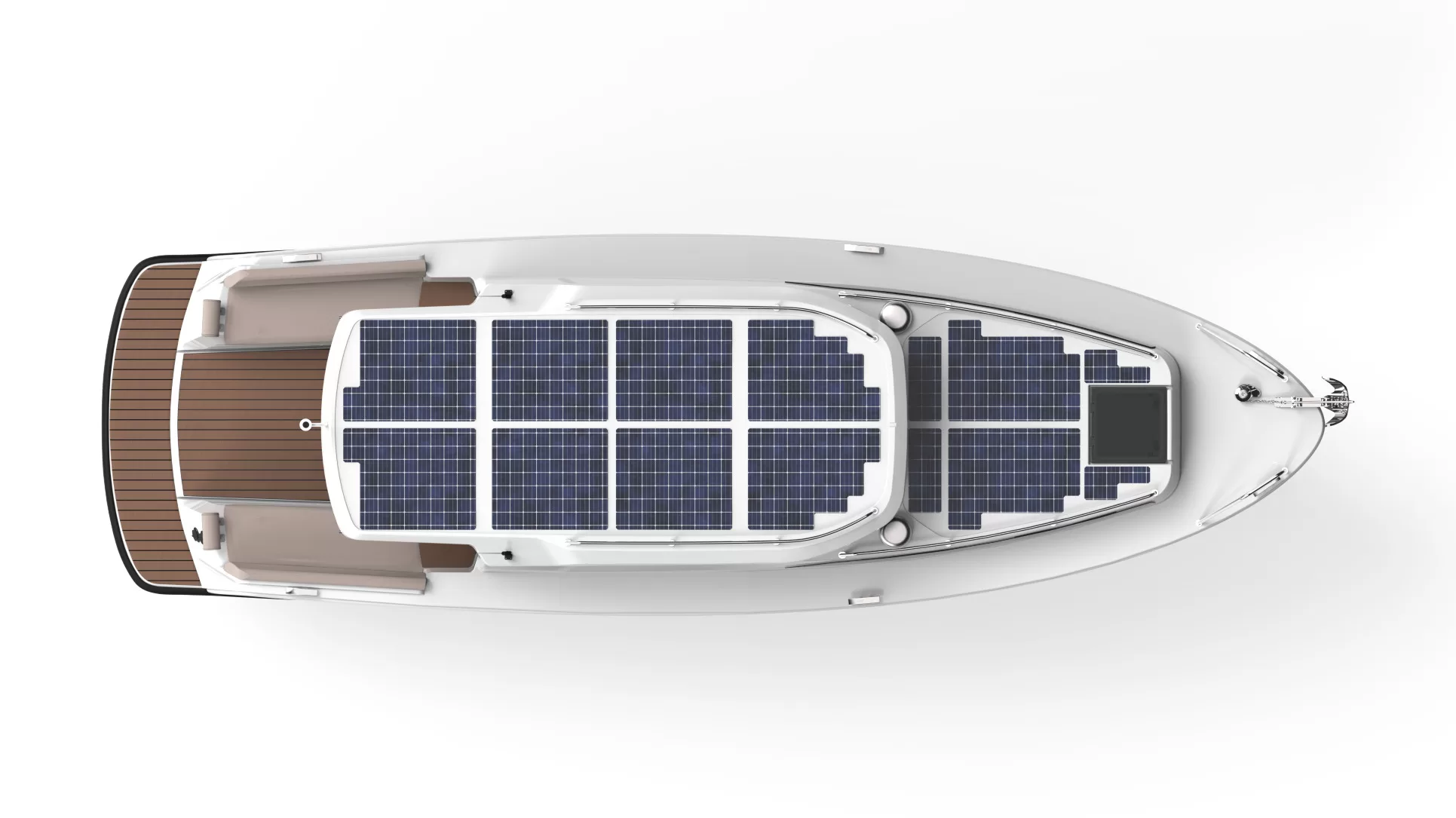 The boat’s optional Juva Foil will reduce resistance by 10-15% at 3-12 knots, leaving minimal wake and zero noise and emissions to allow users to be at “one with nature.” Balancing performance and energy consumption, the boat will reach a top speed of 12 kt and comfortably cruise at 6-10 kt.