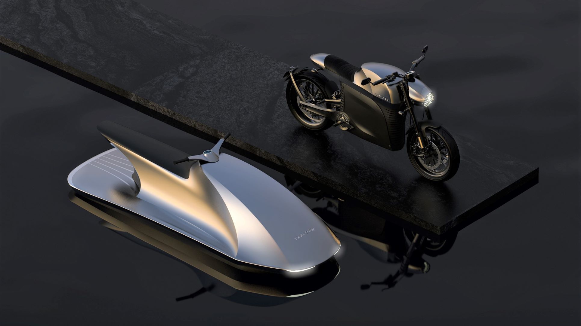 - Tarform’s Raye watercraft with its Luna motorcycle.