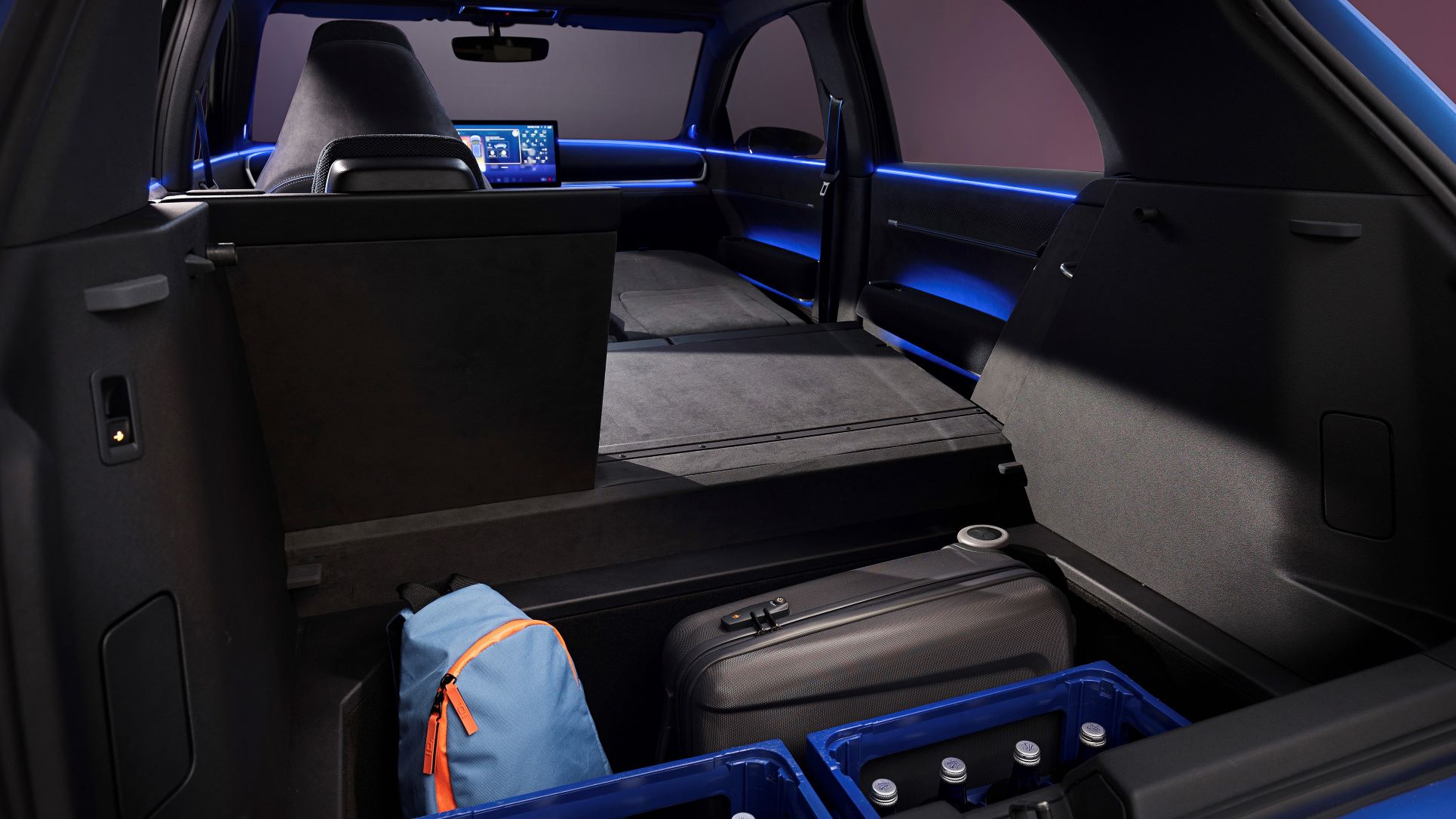 There is a lockable, 50-L (1.8 ft³) stowage area under the rear bench seat designed for the charging cable and items such as a first-aid kit and larger devices such as laptops and tablets that can also be charged there.
