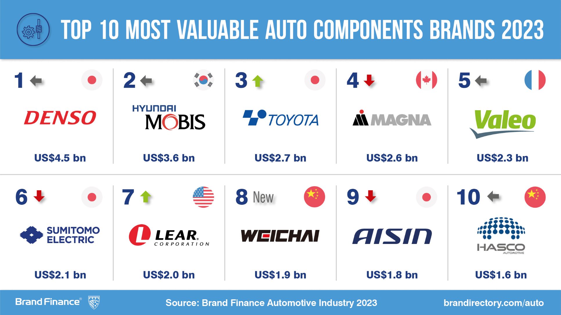 - Brand Finance’s Auto Component Top 10 Most Valuable Brands.