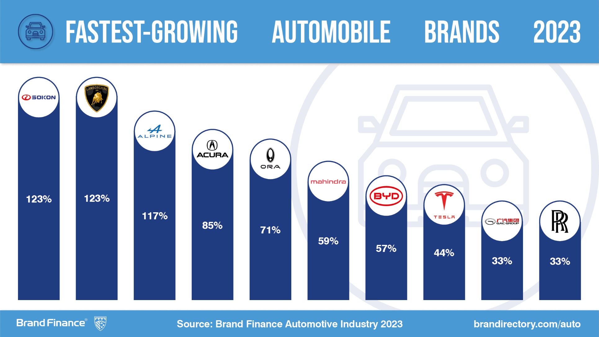 - Brand Finance’s Automobile Top 10 Fastest-growing Brands.