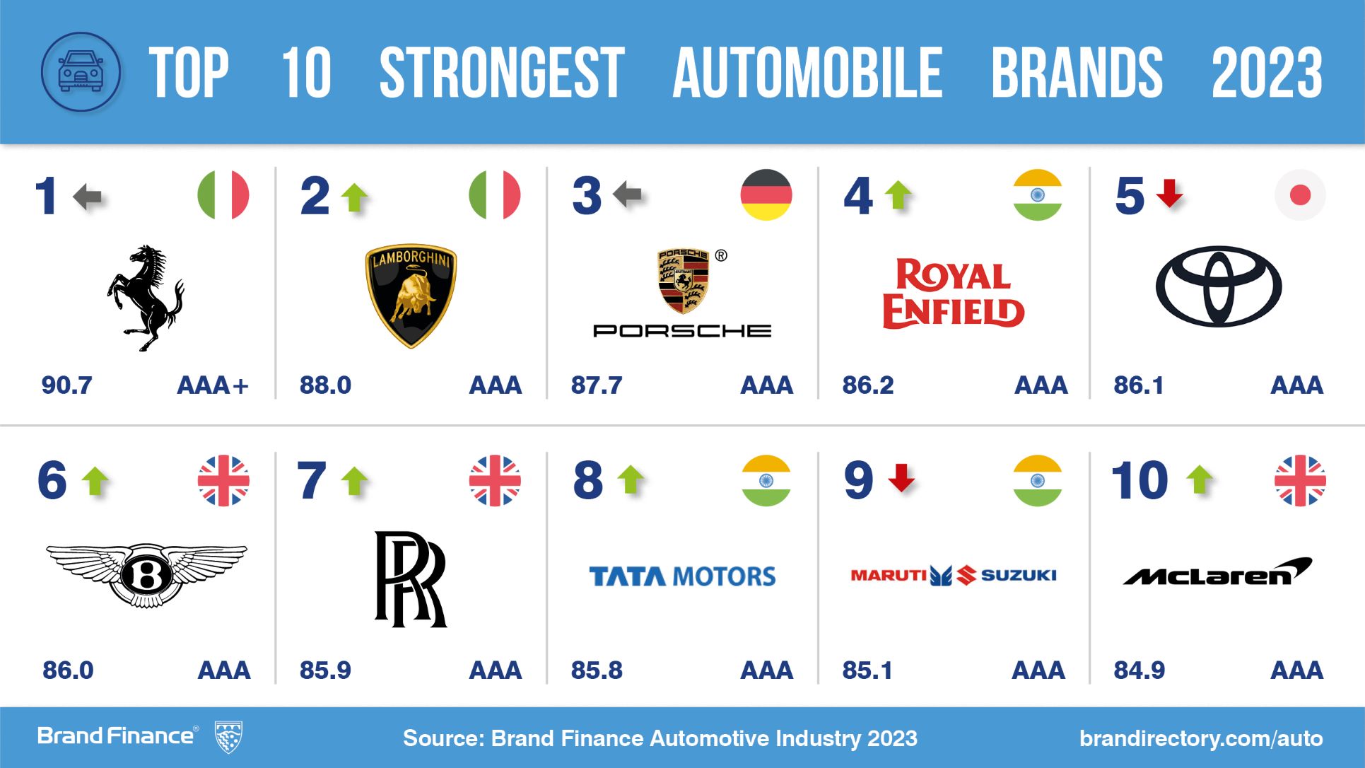 - Brand Finance’s Automobile Top 10 Strongest Brands.
