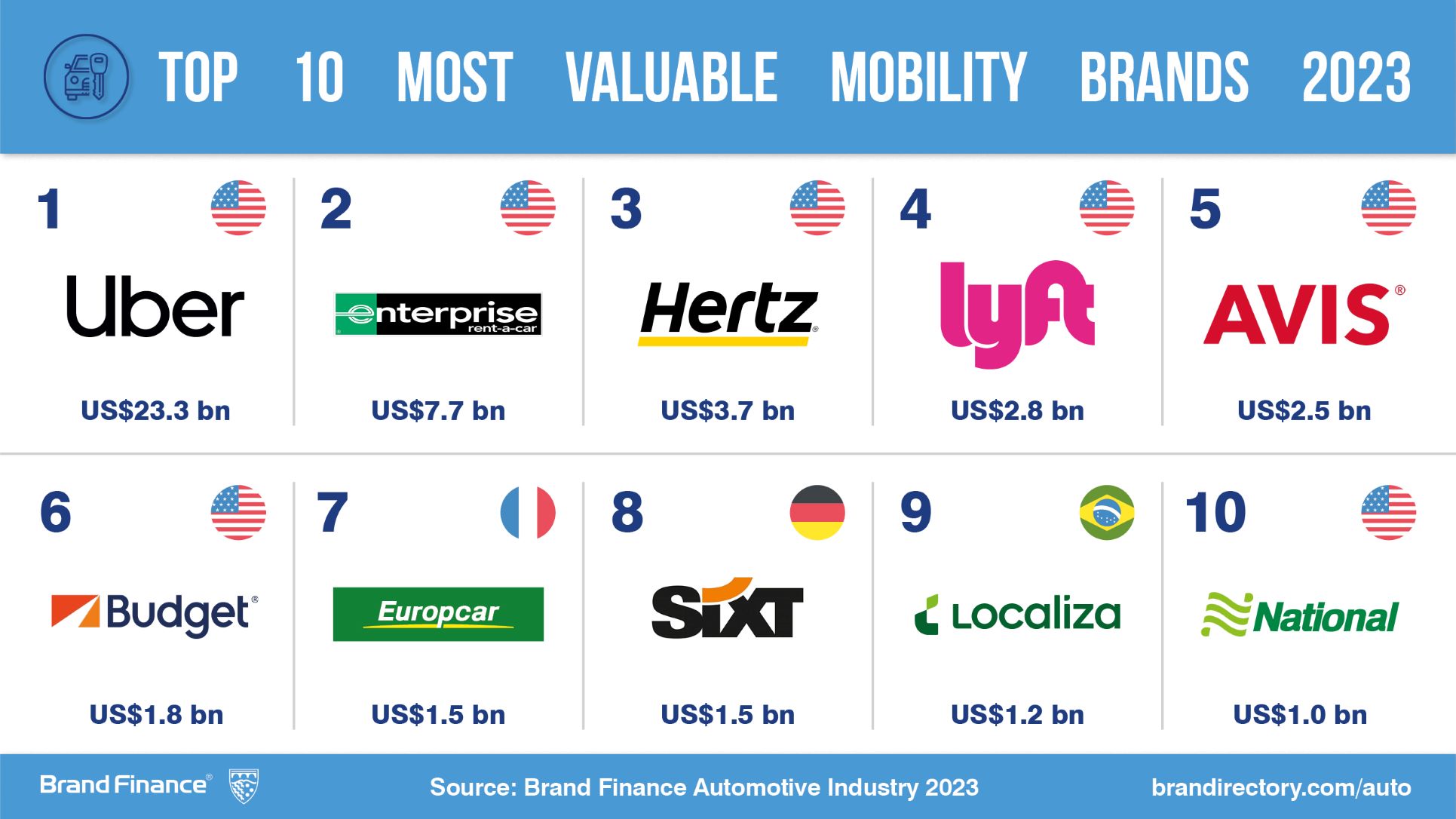 - Brand Finance’s Mobility Top 10 Most Valuable Brands.