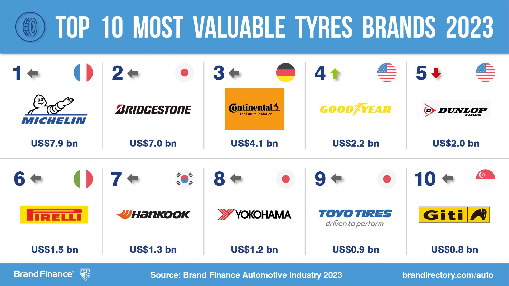- Brand Finance’s Tire Top 10 Most Valuable Brands.