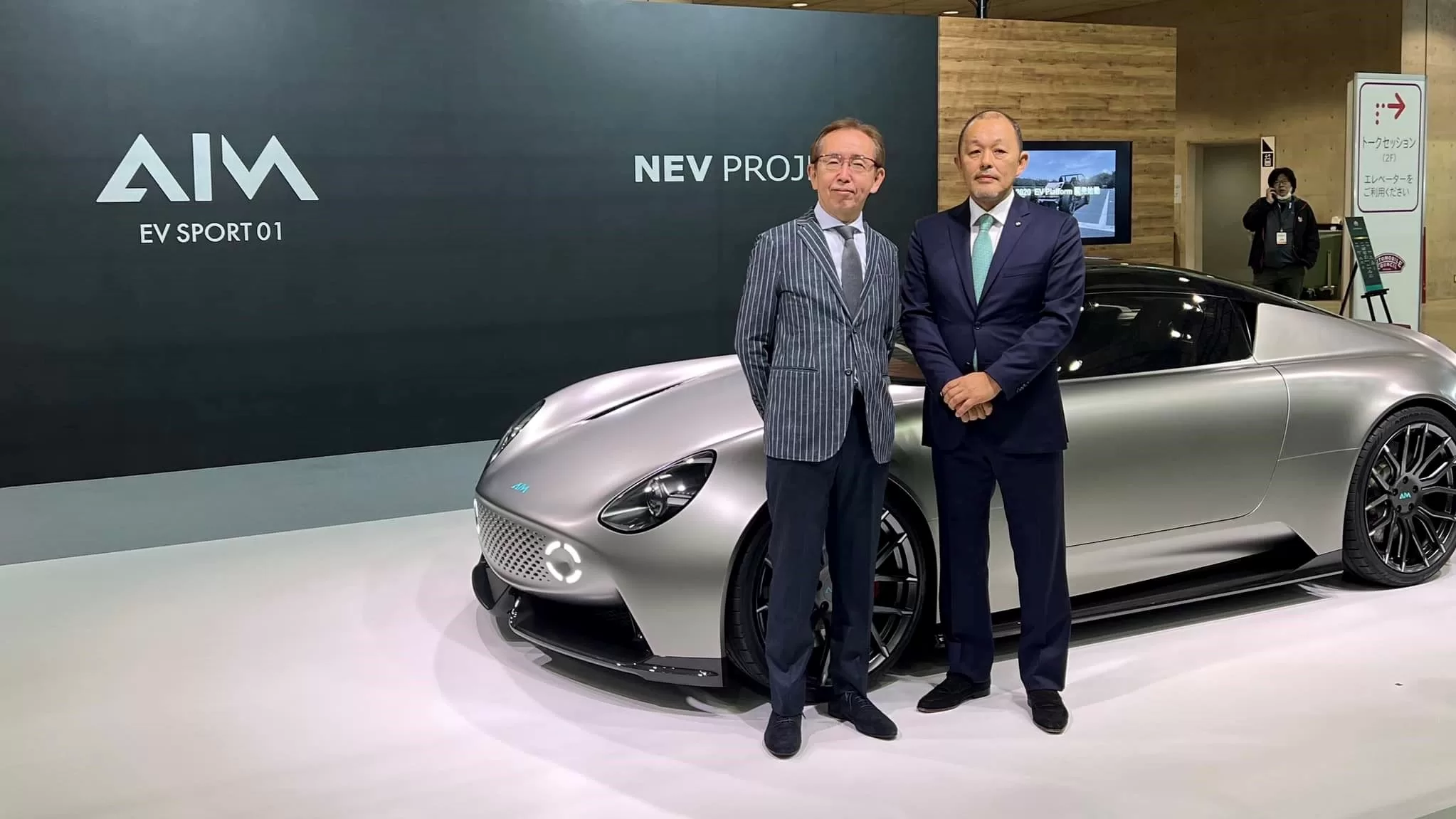 - SN Design Platform’s Nakamura and AIM’s Kotori Suzuki reveal AIM EV Sport 01 at Automobile Council 2023.