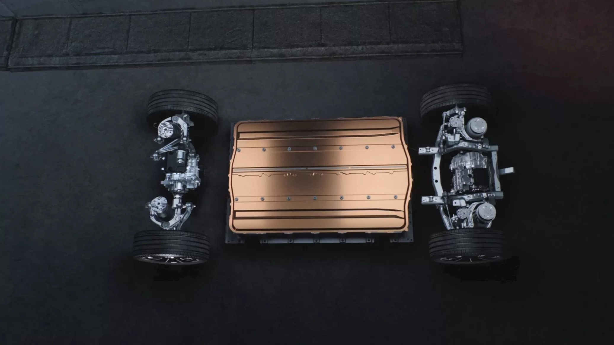 The electric SUV offers one-pedal driving and variable regen on demand. Energy recovery is enabled by a heat pump thermal system that allows for energy to transfer between the battery/power electronics and the cabin to optimize range and minimize the power needed for the five-zone climate control.