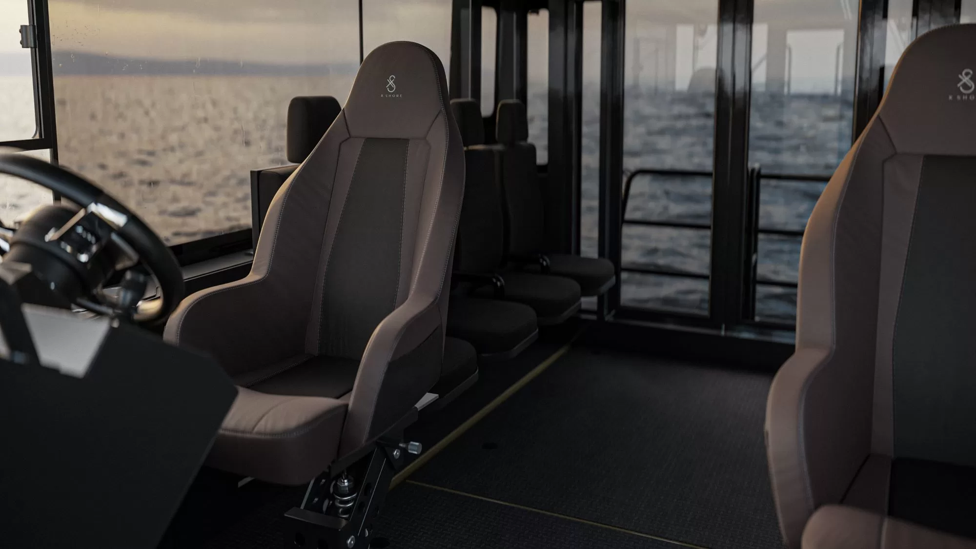 Compared to Eelex, the PRO series has more technical options based on client needs, which can include autopilot, a heated windshield, a single joystick for double thruster control (meaning rotating the joystick will operate the boat in opposite directions to rotate the boat on its axis), a lock-and-hold function to make the boat still in the water for single hand docking, and cabin climate control.