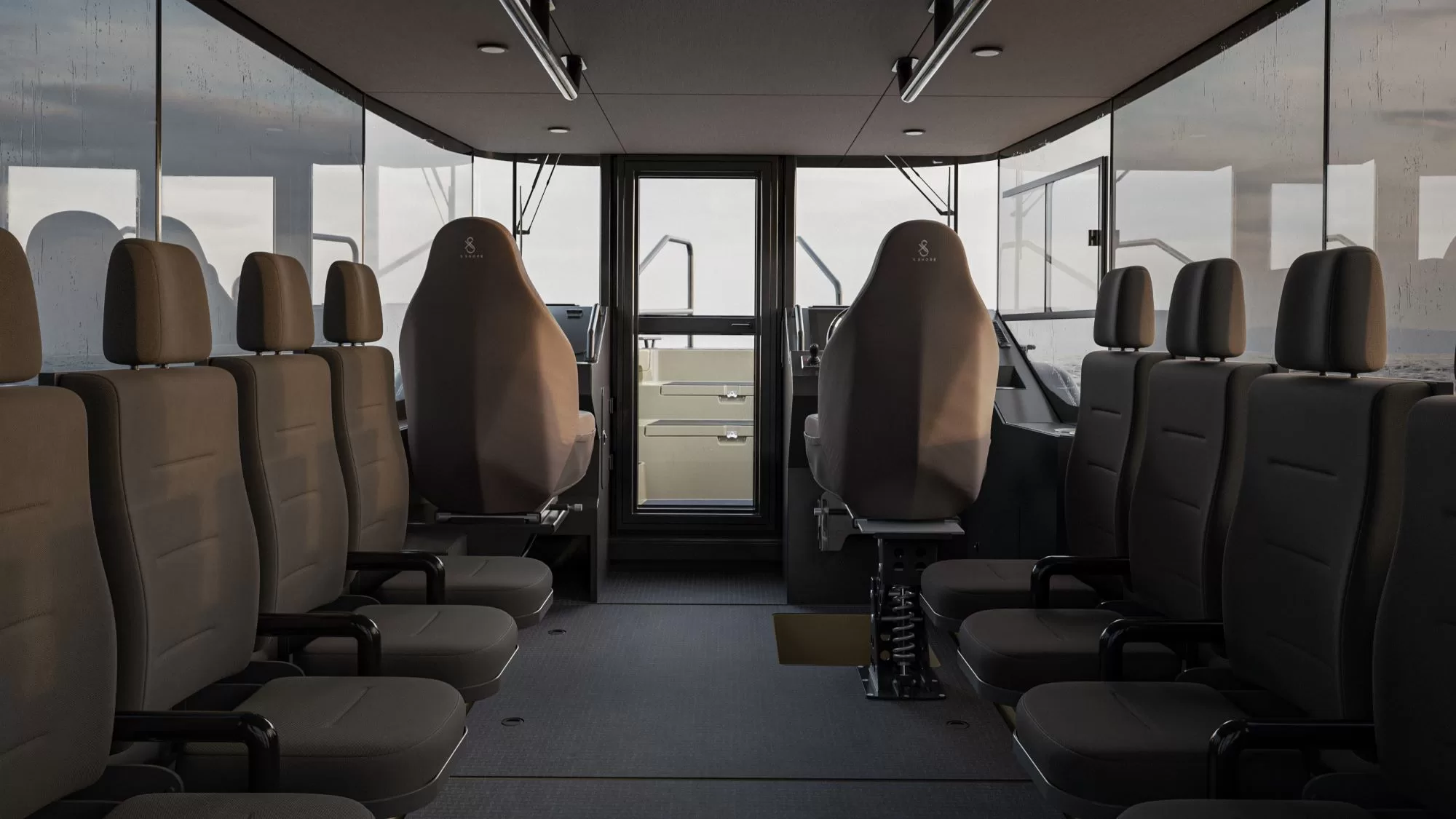Two basic configurations—Open and Cabin—will be built to order according to customer requirements. Some preliminary specs were shared for Cabin and Open PRO models. They share an 8-m (26.2-ft) length, 2.6-m (8.5-ft) beam, and 0.85-m (2.7-ft) depth—and a 170-kW electrical motor. The Cabin/Open vary in height at 2.9/2.8 m (9.5/9.2 ft), weight at 3.5/2.6 ton, and battery capacity at 189/126 kW·h.