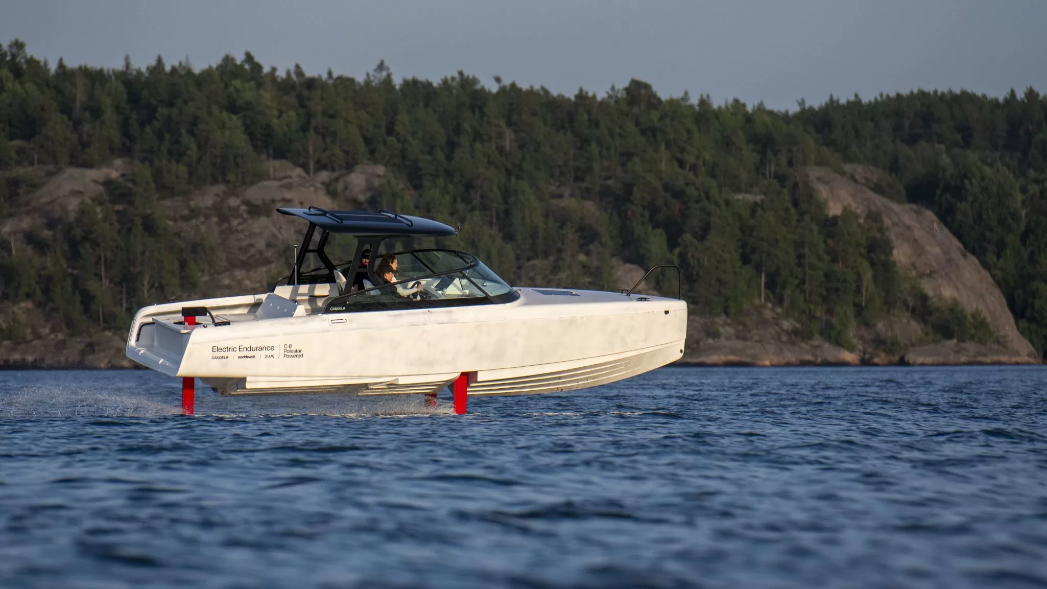- Candela C-8 electric boat at sea.