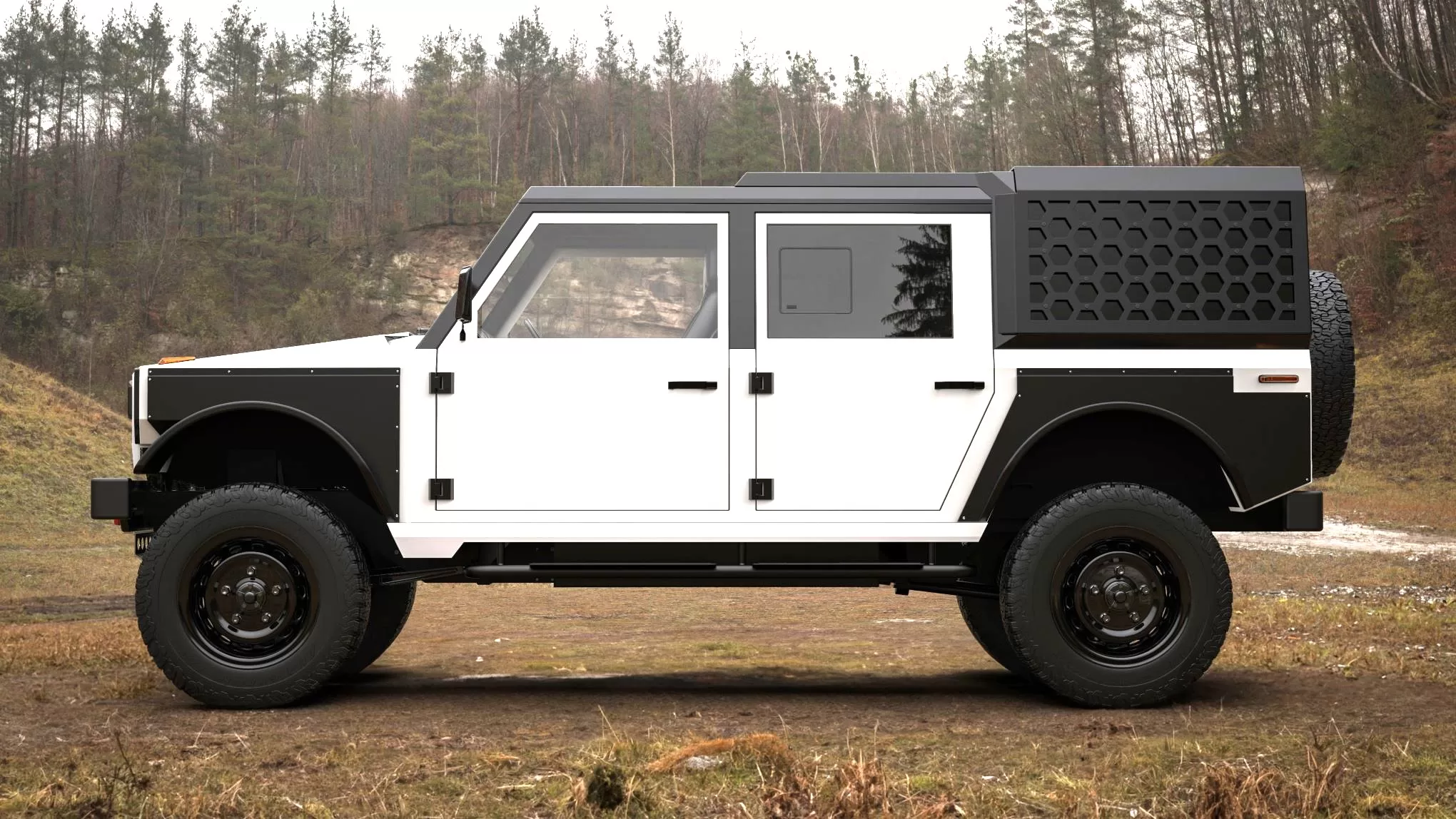 Extensive field trials of the MK_1 pre-production model, which were recently completed in the Scottish Highlands for media and customers, resulted in numerous design and engineering upgrades. The EV now features a more streamlined and lighter front end than the pre-production model, allowing greater forward visibility. A change in body paneling structure now enables components to be more easily replaced, further bolstering the EV’s expected service life, according to Munro. At the rear of the vehicle, an exoskeleton mounted on the hard top on Utility specification models enables easy mounting of equipment, an attractive feature for customers operating in sectors Munro is targeting such as agriculture, construction, outdoor maintenance, disaster relief, rescue, mining, and defense.