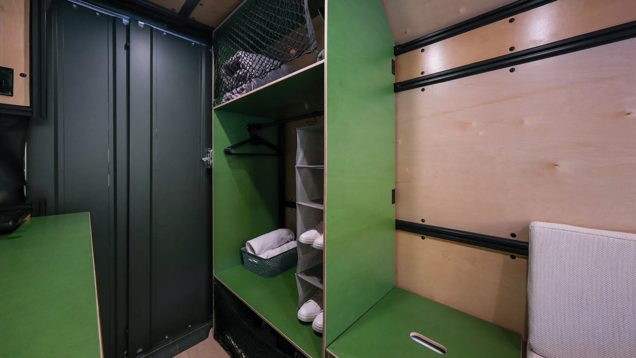 Exposed mounting rails in the vehicle allow customers to add and remove modules themselves based on use cases, life changes, and redecoration needs. The rails can also be used by customers for mounting accessories, either provided by Grounded or sourced elsewhere.