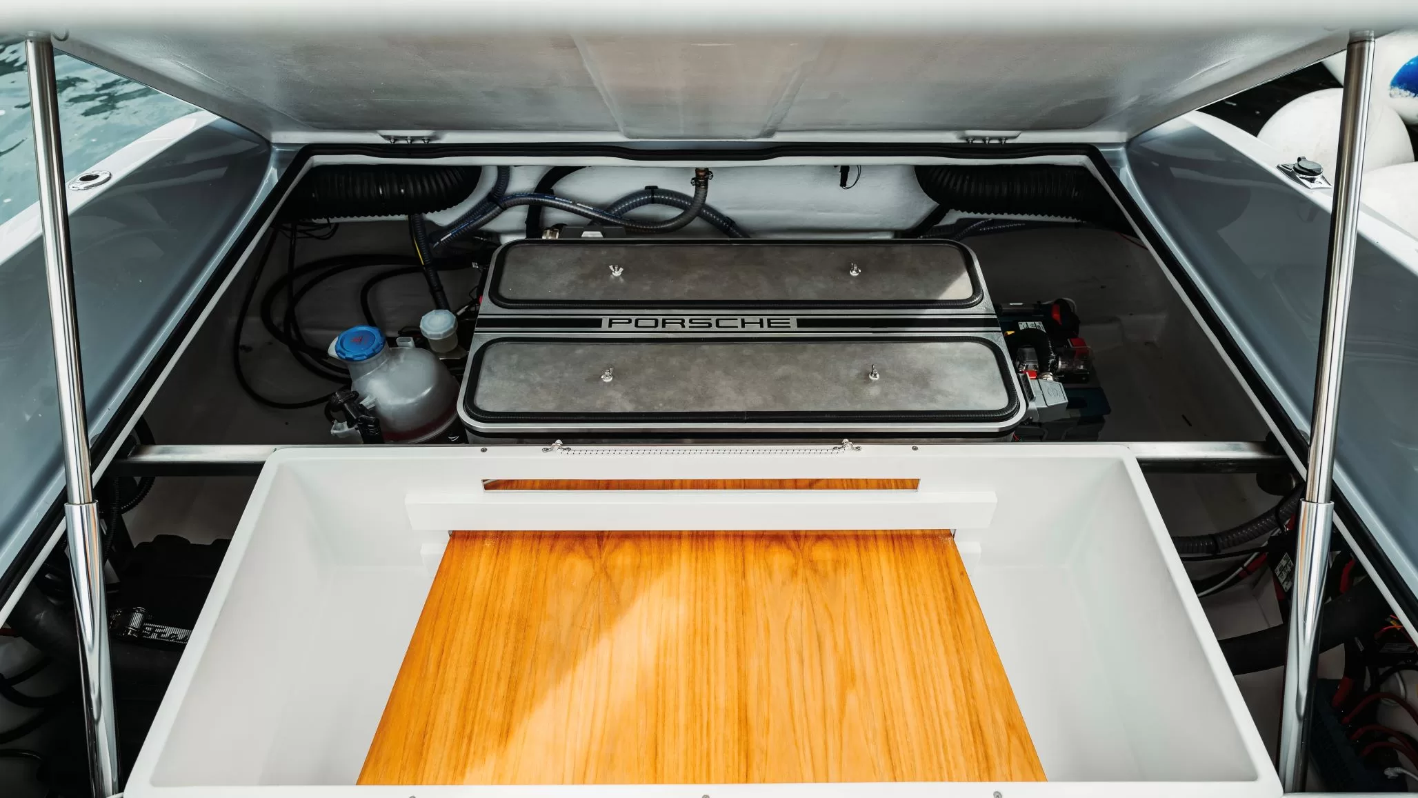 Thanks to the 800-V technology from Porsche, the e-boat’s battery can be charged with over 250 kW of DC at DC fast-charging stations, going from a 10% to 80% state of charge in under 30 min. AC charging at conventional household and high-voltage sockets is also possible; according to experts from both companies, that will be the most common use case, as the infrastructure is currently available in most ports. An 11-kW AC charger on board the e-boat is standard.