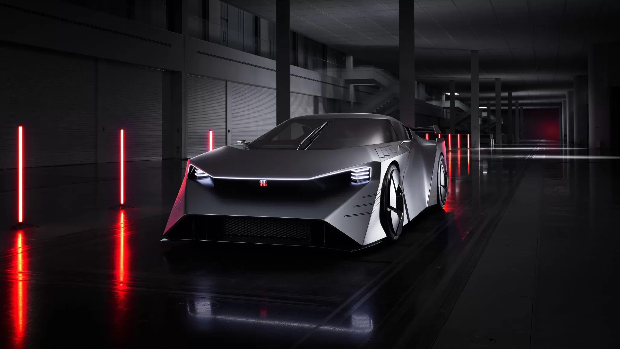 The exterior of the Hyper Force, which Nissan developed jointly with its NISMO racing team, is designed for high aerodynamic performance. The two-tiered aerodynamic structure under the front hood provides both strong downforce and high cooling performance. Meanwhile, a dual-level rear diffuser controls airflow. Other design elements maximize downforce and grip, including front canards, front fender flip, and both ends of the rear wing, which feature unique active aero functionality. A newly developed plasma actuator suppresses air detachment to maximize grip and minimize inner-wheel lift during cornering. Lightweight forged carbon wheels aid unsprung weight, aerodynamics, and brake cooling.