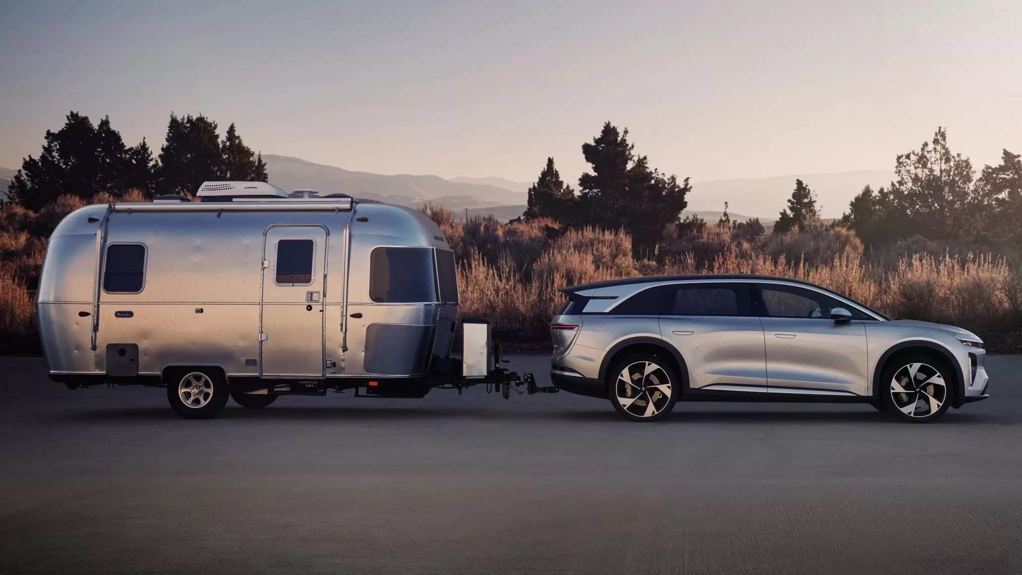 - Lucid Gravity can tow an Airstream.