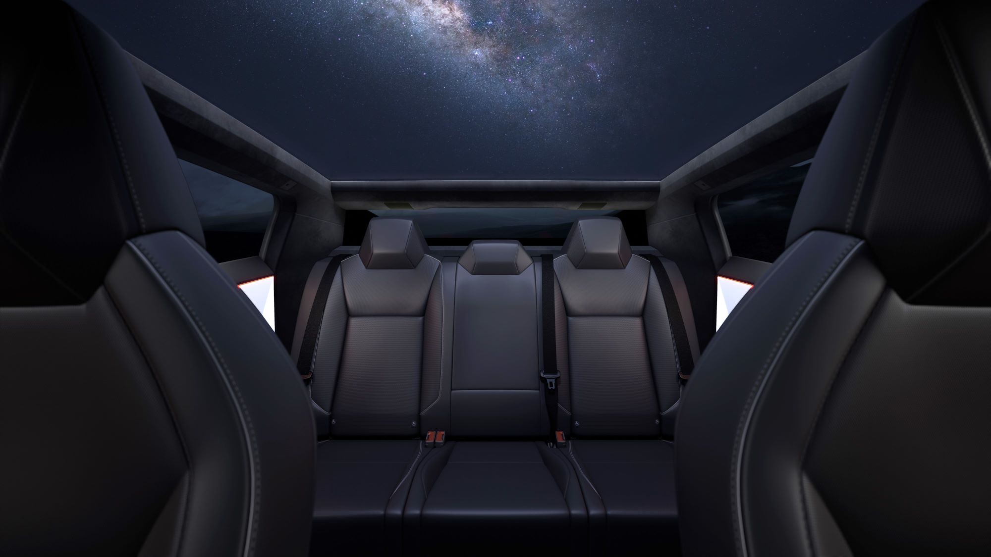 - Cybertruck interior looking from front to back row.