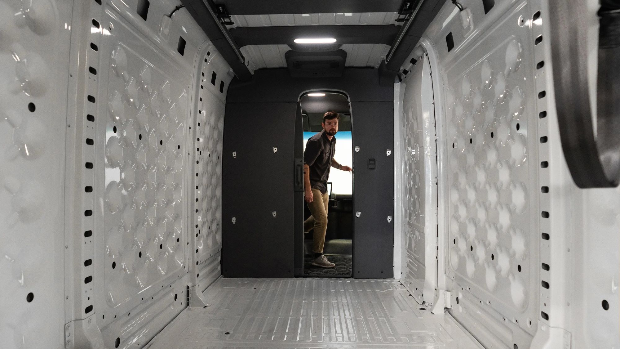 Controls are easily accessible from the steering wheel while driving, and driver visibility and comfort are aided by a patented and energy-saving microclimate, heated and cooled seat. The van is said to have one of the largest center displays of any light-duty commercial vehicle, and the cabin features two wireless charging pads and “ample” storage throughout.
