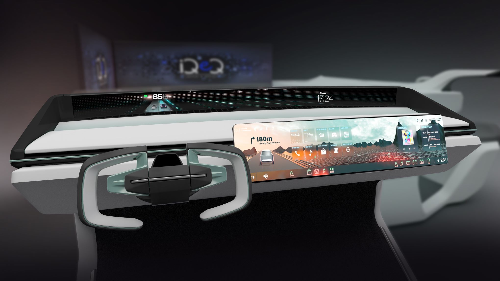 Front and center in the concept is Forvia’s AirVision, an integrated system solution that offers new ways of displaying information and creating immersive experiences through image reflection. The system offers a stable and vibration-free reflection by creating a 3D virtual image on a flat translucent surface integrated into the instrument panel, combining displays, lighting, surfaces, and structures in unique ways. This scalable system can replace cluster, center, and co-driver displays. It provides a clean interior design, decluttering the dashboard by replacing traditional display configurations and removing display frames, borders, and split lines.