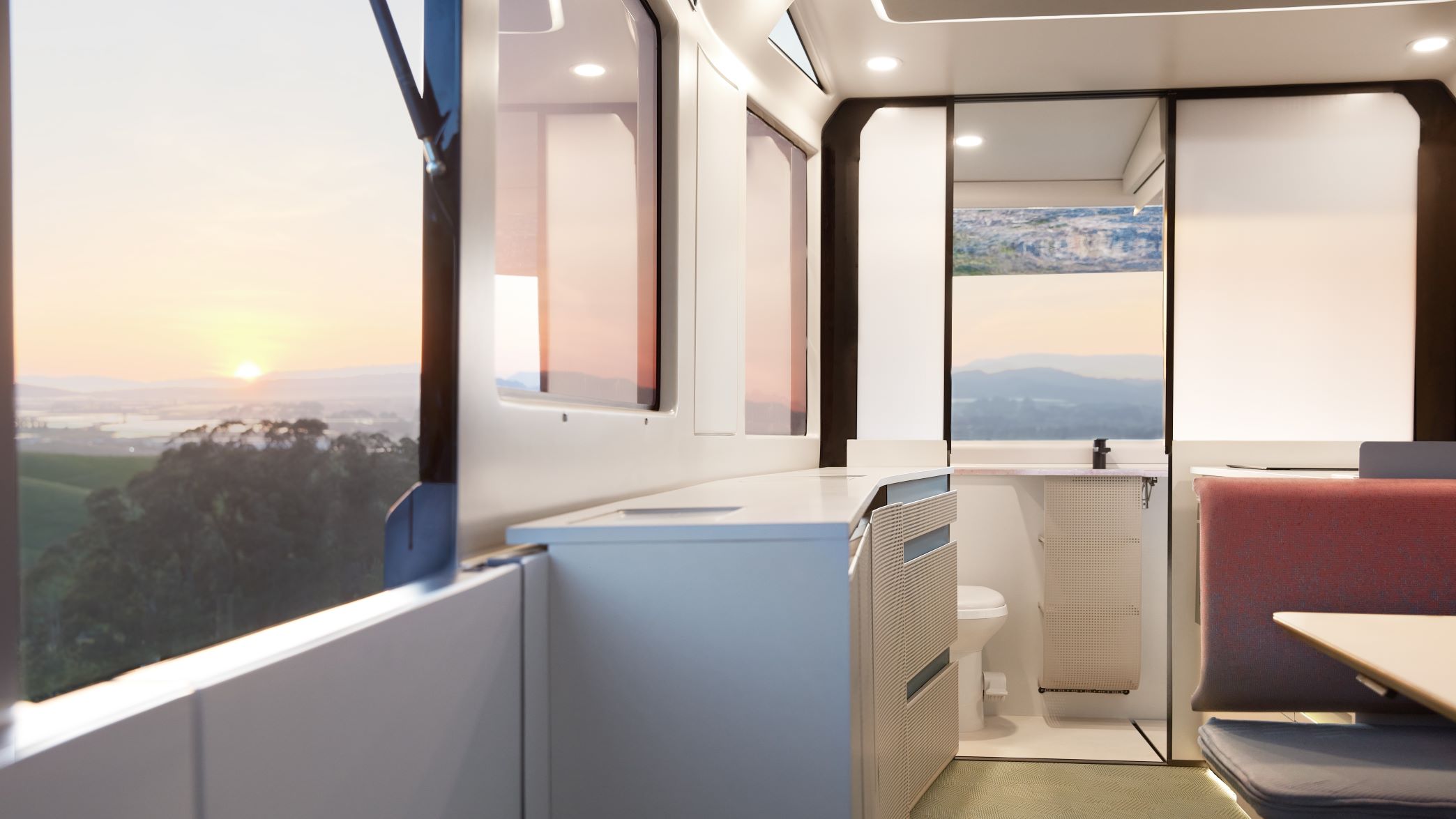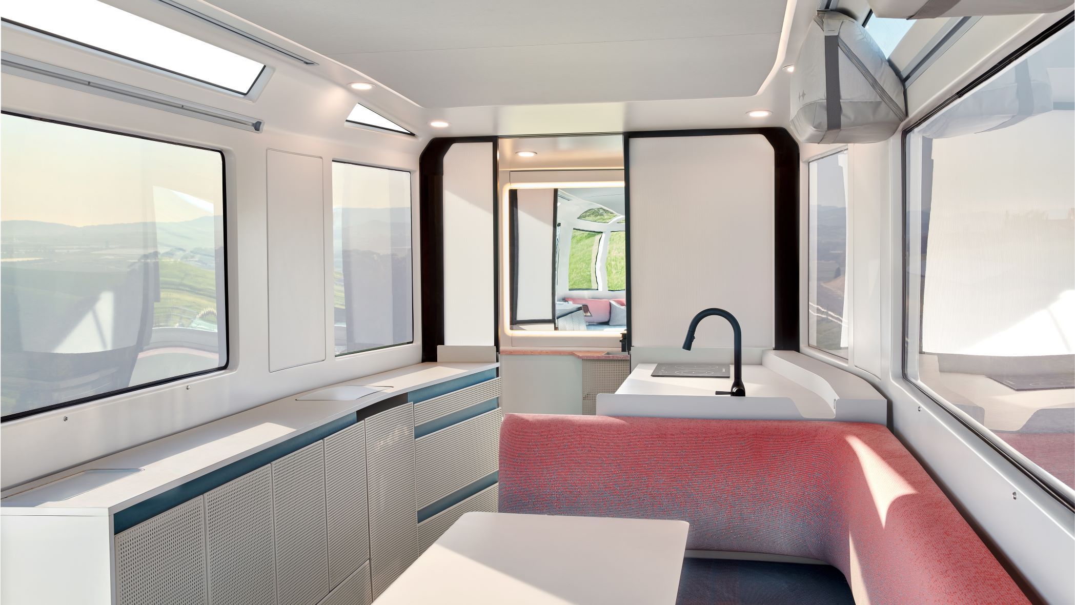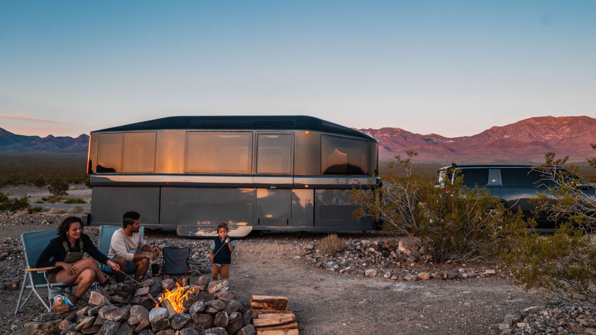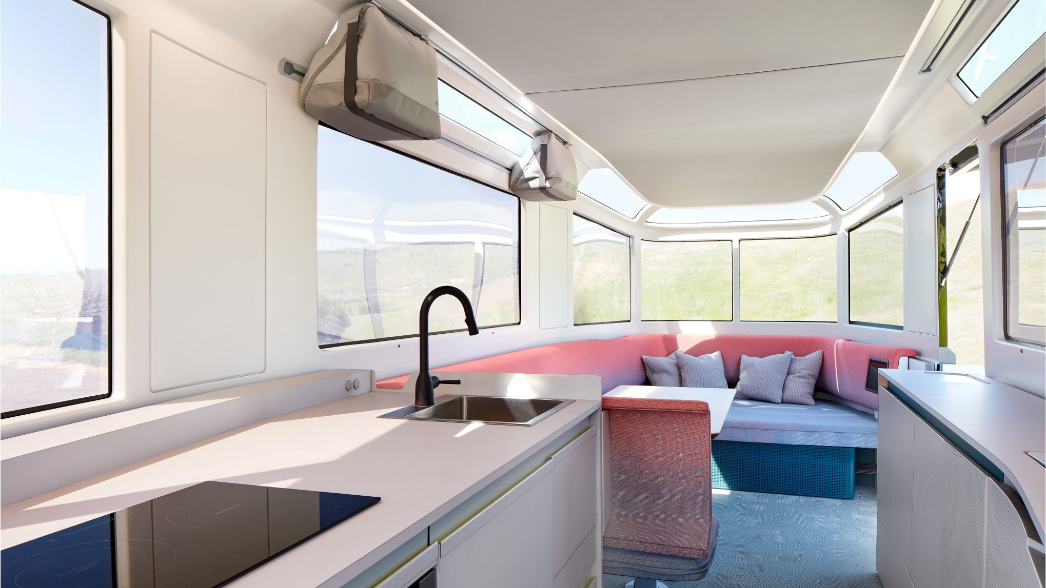 Its battery system can provide a week of off-grid power without charging. With up to 3 kW of solar power, the RV is engineered to power the living needs of its occupants and eliminate reliance on propane and other fossil fuels. An ecosystem of electric appliances, connected features, and modern amenities is intended to provide a seamless camping experience.