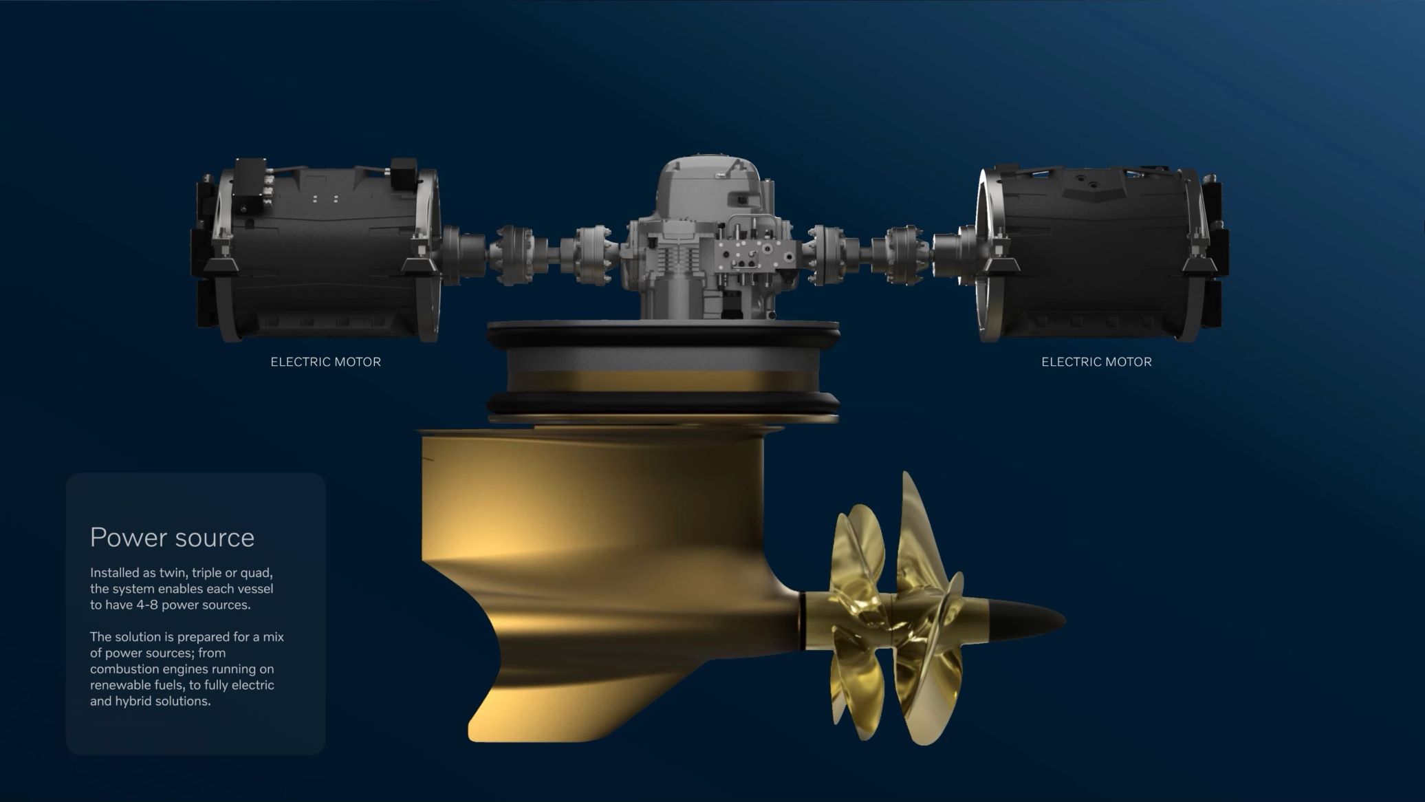 Installed as a twin, triple, or quad, the platform enables each vessel to have four, six, or eight power sources. The mix of power sources could be ICEs running on renewable fuels to fully electric or hybrid solutions, providing the option to combine traditional with electric power sources—a unique approach to efficiency for this class of vessels.