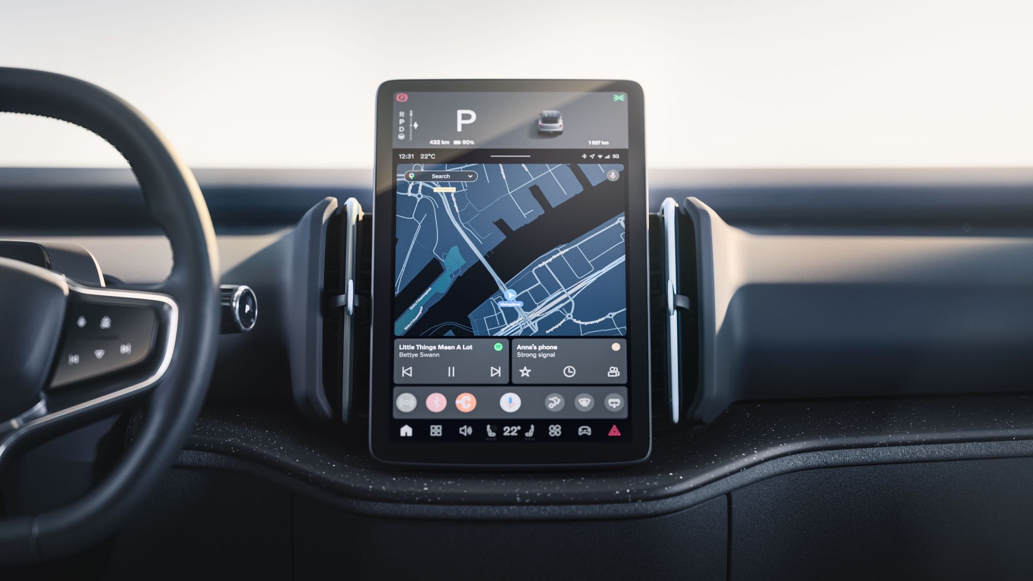 “Inside the EX30 we continue our strategy of contextual and focused interfaces,” said Tom Stovicek, Volvo’s Head of User Experience, at the car’s launch. “On the single screen, key driving information such as speed and charge levels are positioned prominently at the top, with navigation, media, and controls easily visible and accessible below. We also include a contextual bar that gives you the most relevant functions for your needs at any time.”