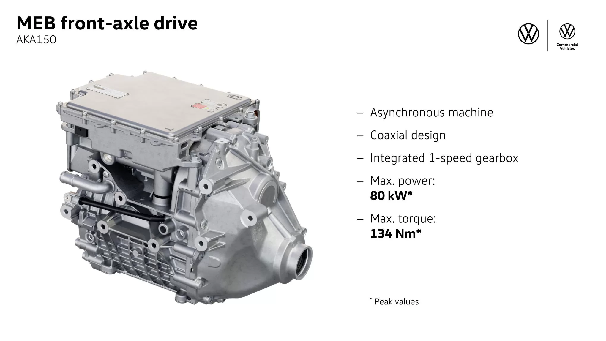 There are two electric drive motors, an 80-kW unit on the front axle and a 210-kW unit on the rear axle. Thanks to the extra 100 kW and the 4Motion four-wheel-drive system, the normal- and long-wheelbase GTX offer higher maximum trailer weights increased by 800 and 600 kg (1760 and 1320 lb), respectively, for 1800- and 1600-kg (3970- and 3530-lb) maximum capacities.