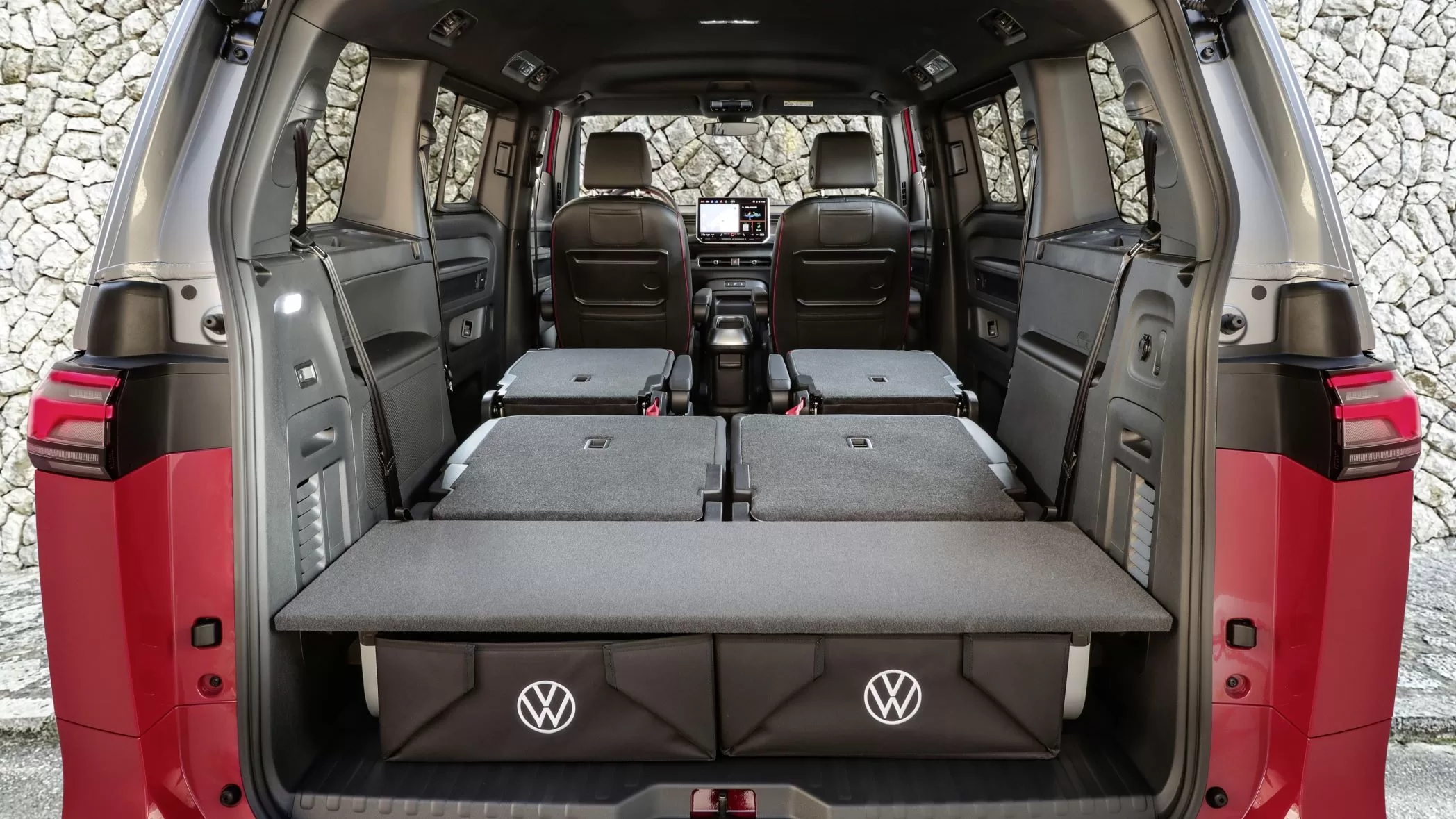 The ID. Buzz with a long wheelbase is now available with the largest panoramic sunroof ever used in a VW, turning “the ID. Buzz into a Samba bus for a new era.” The multi-layered smart glass has an integrated liquid crystal film that can be electrically switched from transparent to opaque.