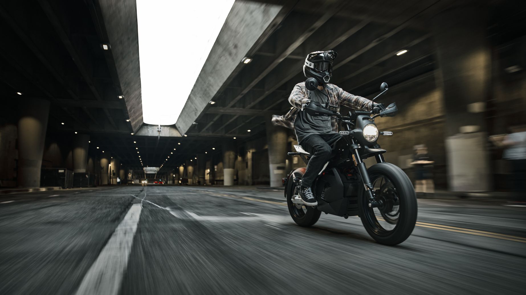 However, the Outset offers greater suspension travel for more “challenging surfaces;” a longer, narrower motocross-style seat; and multi-role Dunlop Mutant tires for urban exploration and beyond. It also has its own headlight design, mirrors, wider handlebar, seat unit, and suspension. The more upright riding position also necessitated repositioning the footpegs forward and adding a longer kickstand.