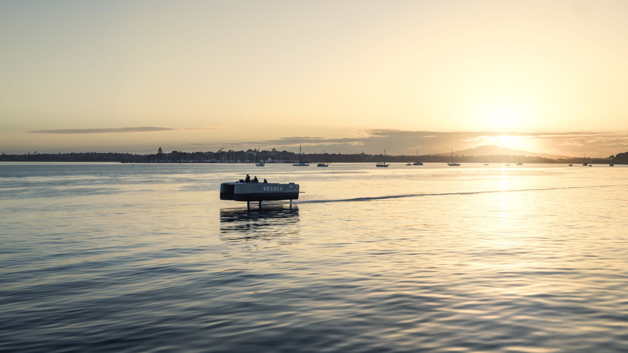 - Vessev VS-9 hydrofoiling at sunset.