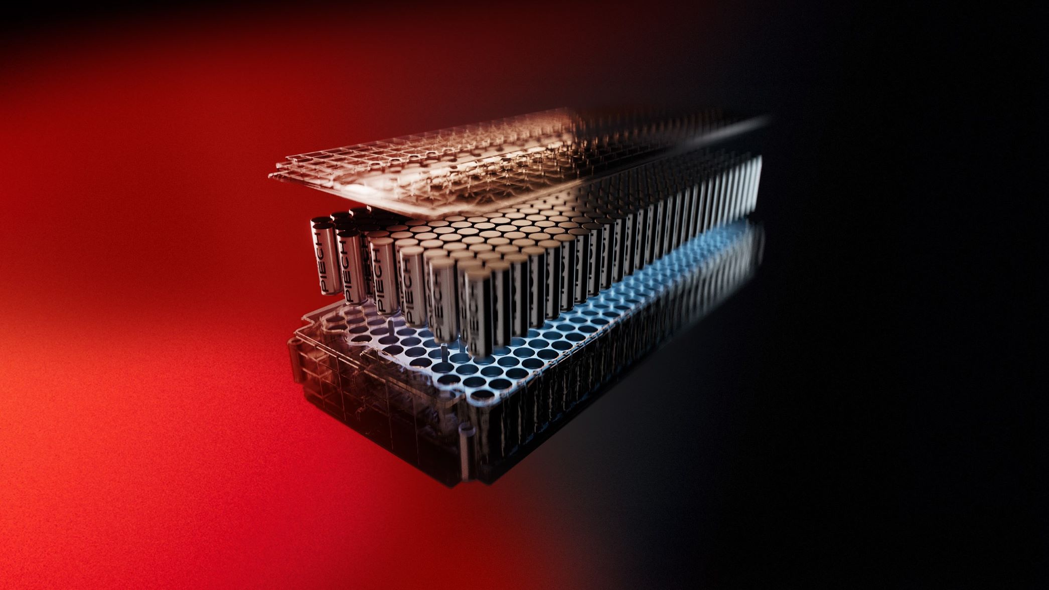 It directly cools the cylindrical cells and components that carry current using dielectric oil. The flow rate is adjusted to ensure that each of the 16 battery modules receives cooling in parallel. The thermal management system’s heat exchangers are supported by additional “chillers” if needed, ensuring optimal battery operating temperature during high-performance operation and fast charging.