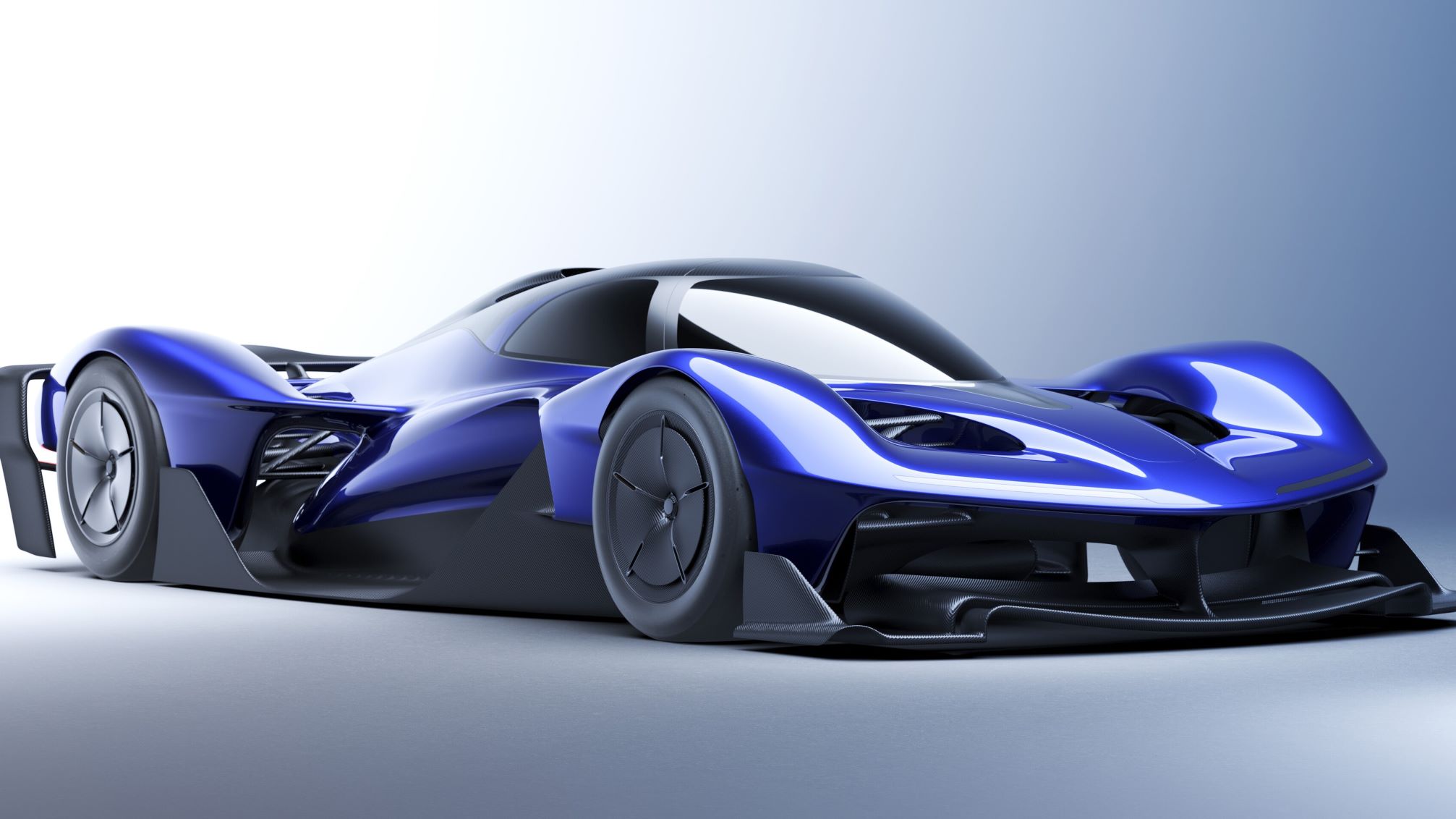 Newey says that efficiency is high as well, in terms of downforce-to-drag ratio and near the lift-to-drag ratio of an aircraft or a bird of prey. To achieve that, the car has a “blown diffuser” and active suspension, the latter to give a stable aerodynamic platform with “reasonably sensible” spring rates, not nearly as stiff as a current Formula 1 or LMP car, for ride compliance.