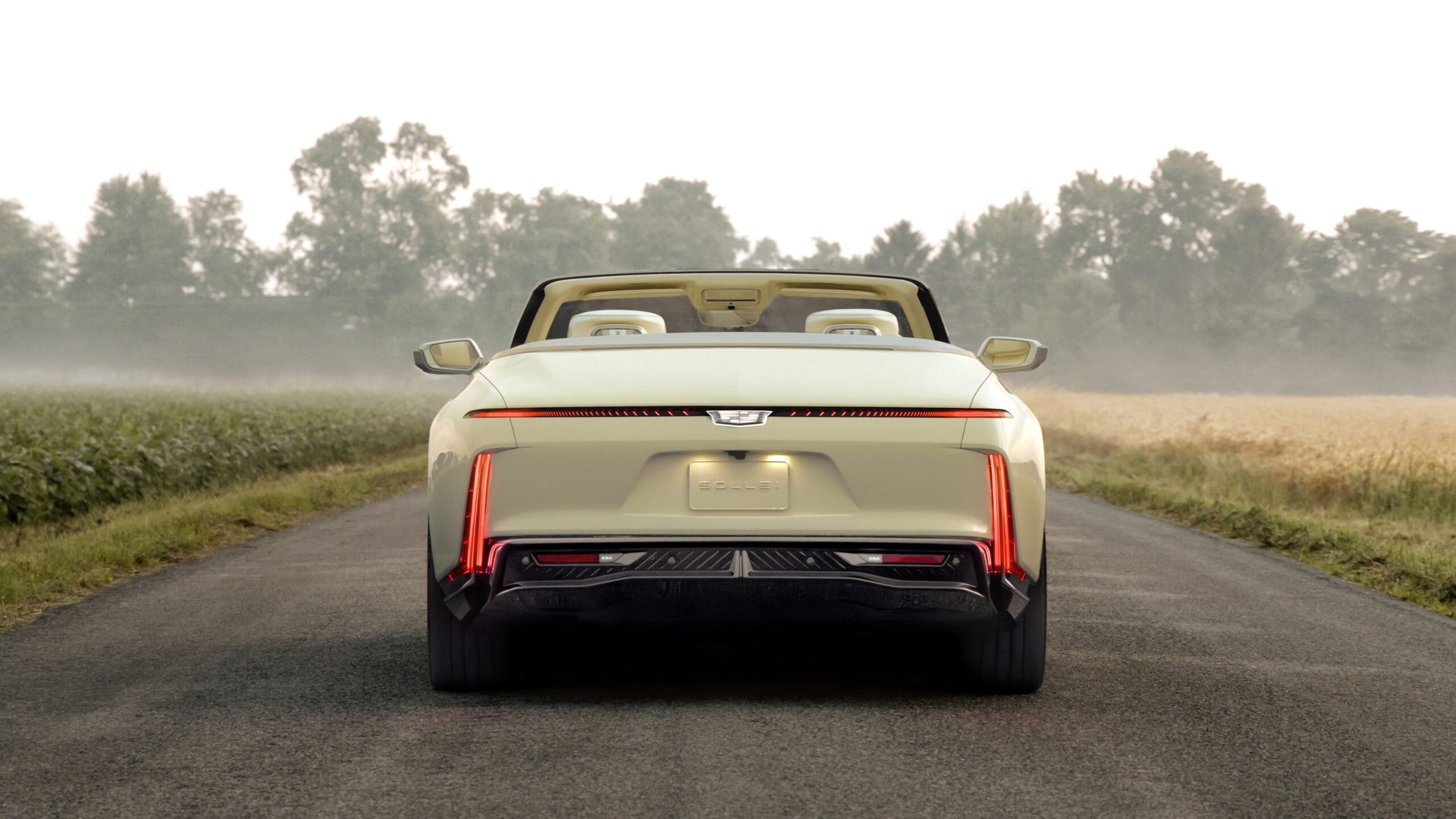 The interior is meant to channel Cadillac’s “art of travel” design philosophy and craftsmanship is a key focus of the design. The interior features unstained wood veneers to “honor” their natural colors and grain pattern variations with open pore finishes, with each piece hand-cut and hand-laid using marquetry techniques. The windshield is framed in milled brushed aluminum. The ambient lighting can be customized using 126 color options in each zone for specific moods.
