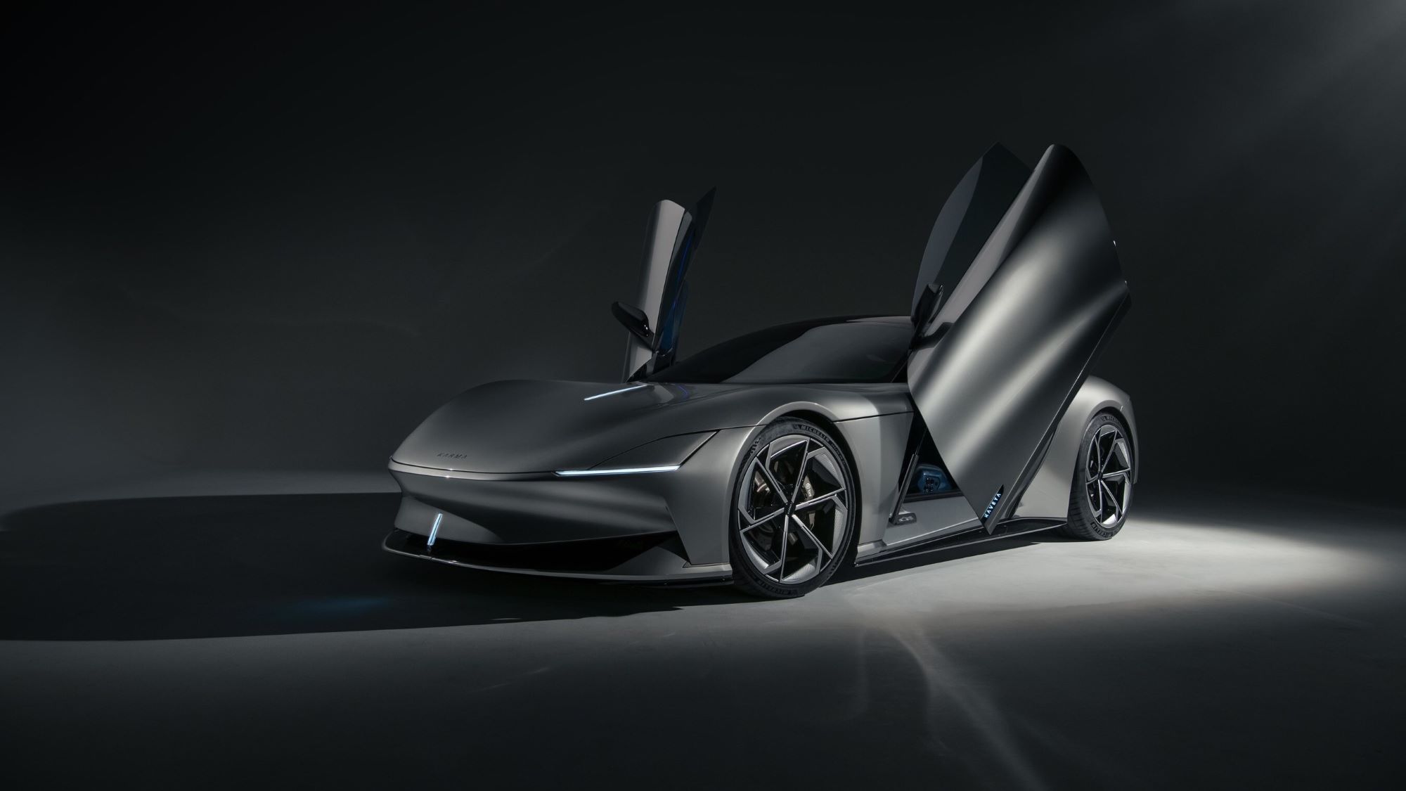 The central hallmark of Karma’s new design language is the Comet Line, forming a wake from the Kaveya’s nose through its hood, encircling its cockpit, then tapering downward to its conclusion through the butterfly doors—”capturing an aura akin to a stealth jet.”