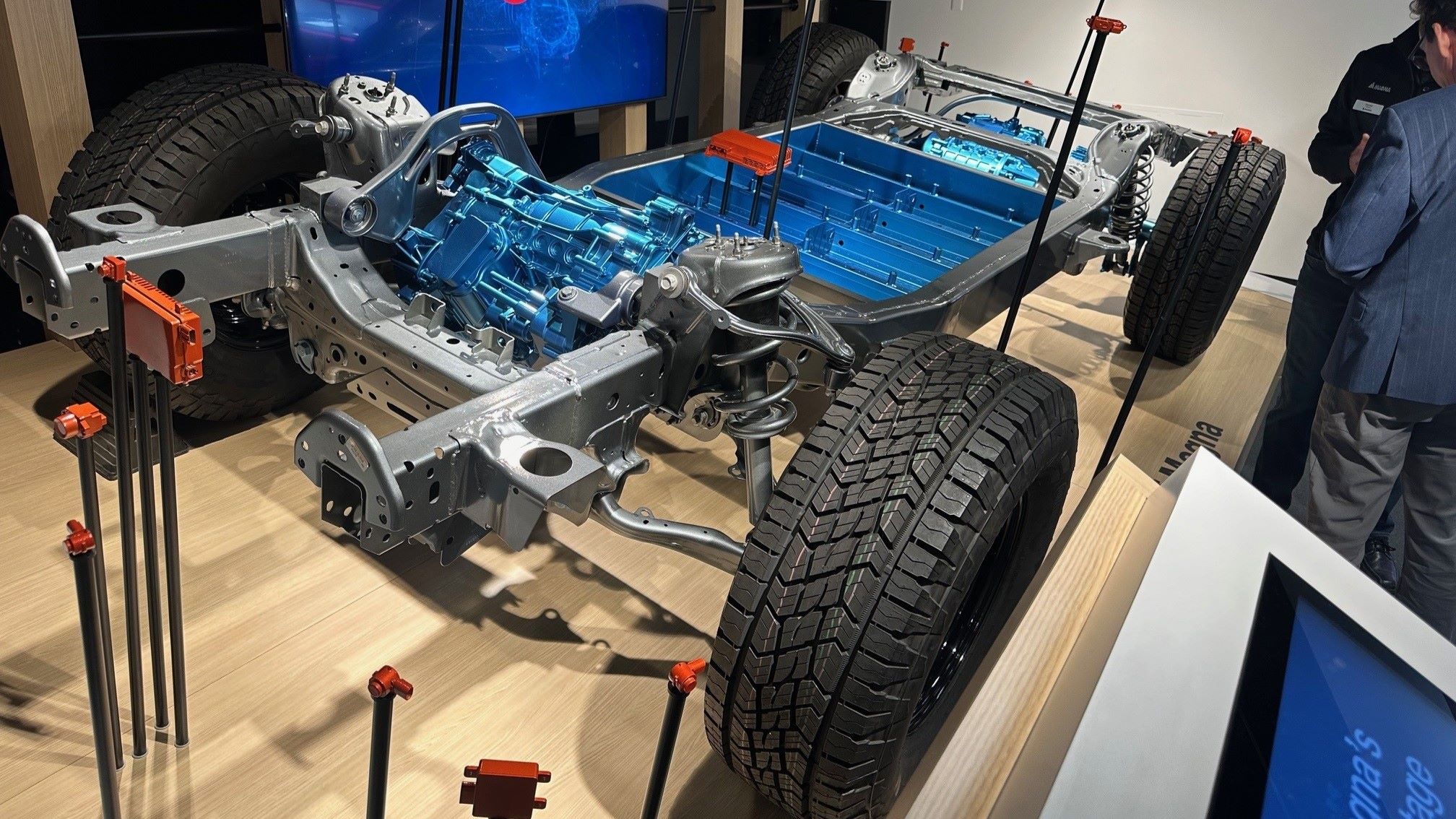 While full-system expertise is a claim of many of the industry’s top suppliers, Magna’s claims are unique in that it has been a supplier of the whole sensor system for the Fisker Ocean, and via its Magna Steyr facility in Austria has engineered, developed, and assembled under contract for OEMs like Mercedes-Benz and others for decades. At the tech preview, a Power of Magna chassis display reinforced its portfolio of offerings and emphasized the company’s ability to create full system and vehicle concepts.