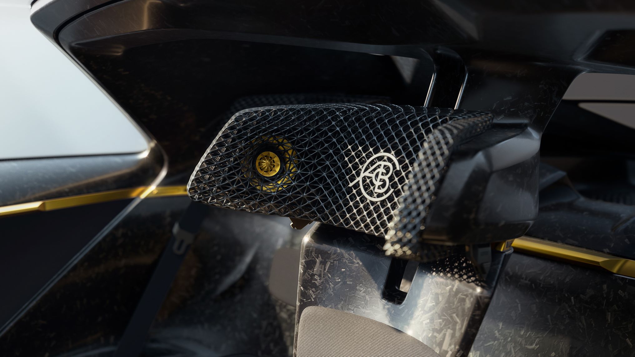 Theory 1 is designed with only ten main A-surface materials with performance, durability, lightweight, recycled, and recyclable properties. These are cellulose-based fiber, recycled chopped carbon fiber, titanium, recycled glazing, recycled polyester, recycled rubber, elastomeric polyurethane, transparent polycarbonate, thermoplastic polyurethane, and recycled aluminum.