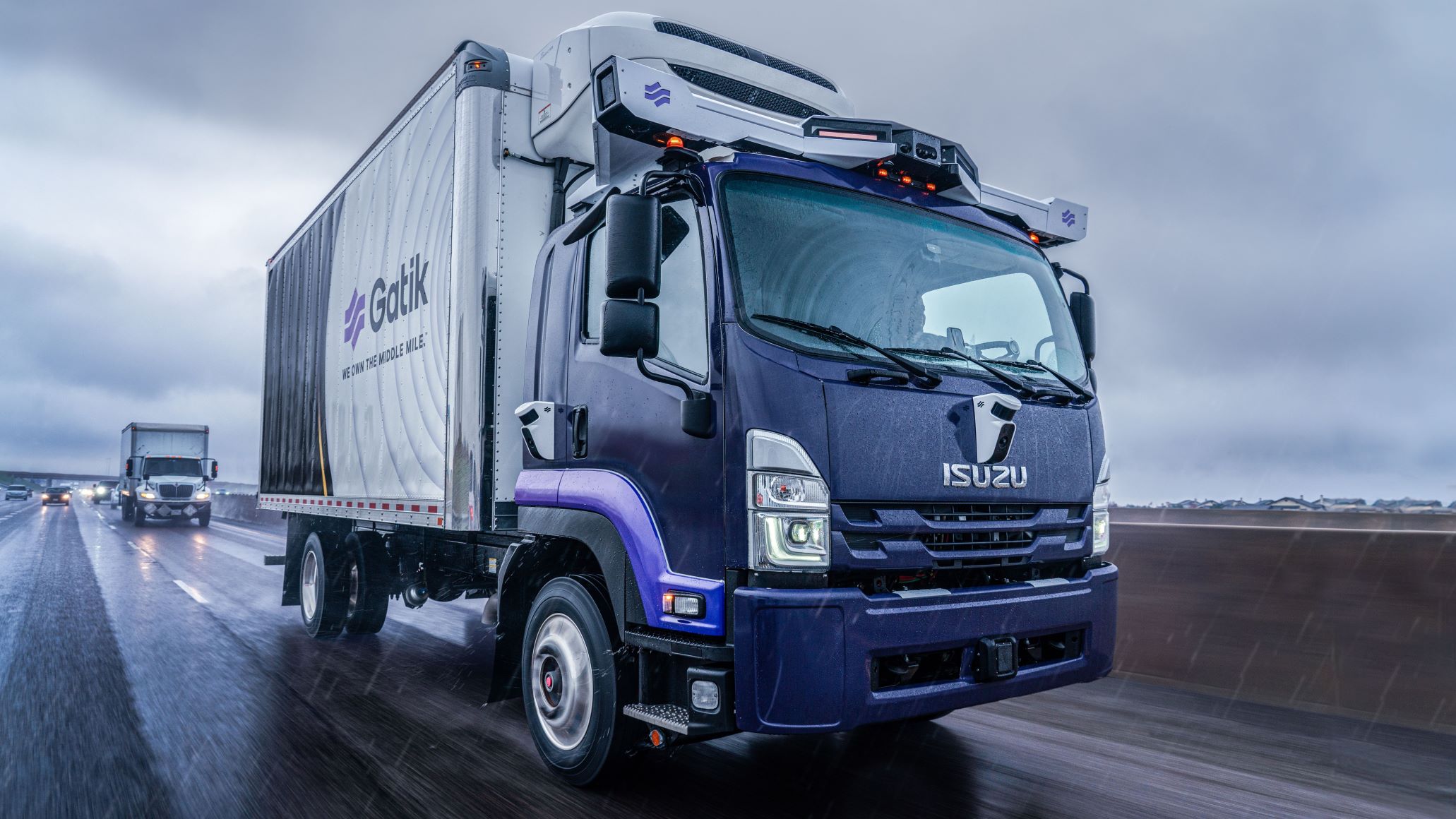- Gatik’s autonomous middle-mile tech fitted to Isuzu truck.