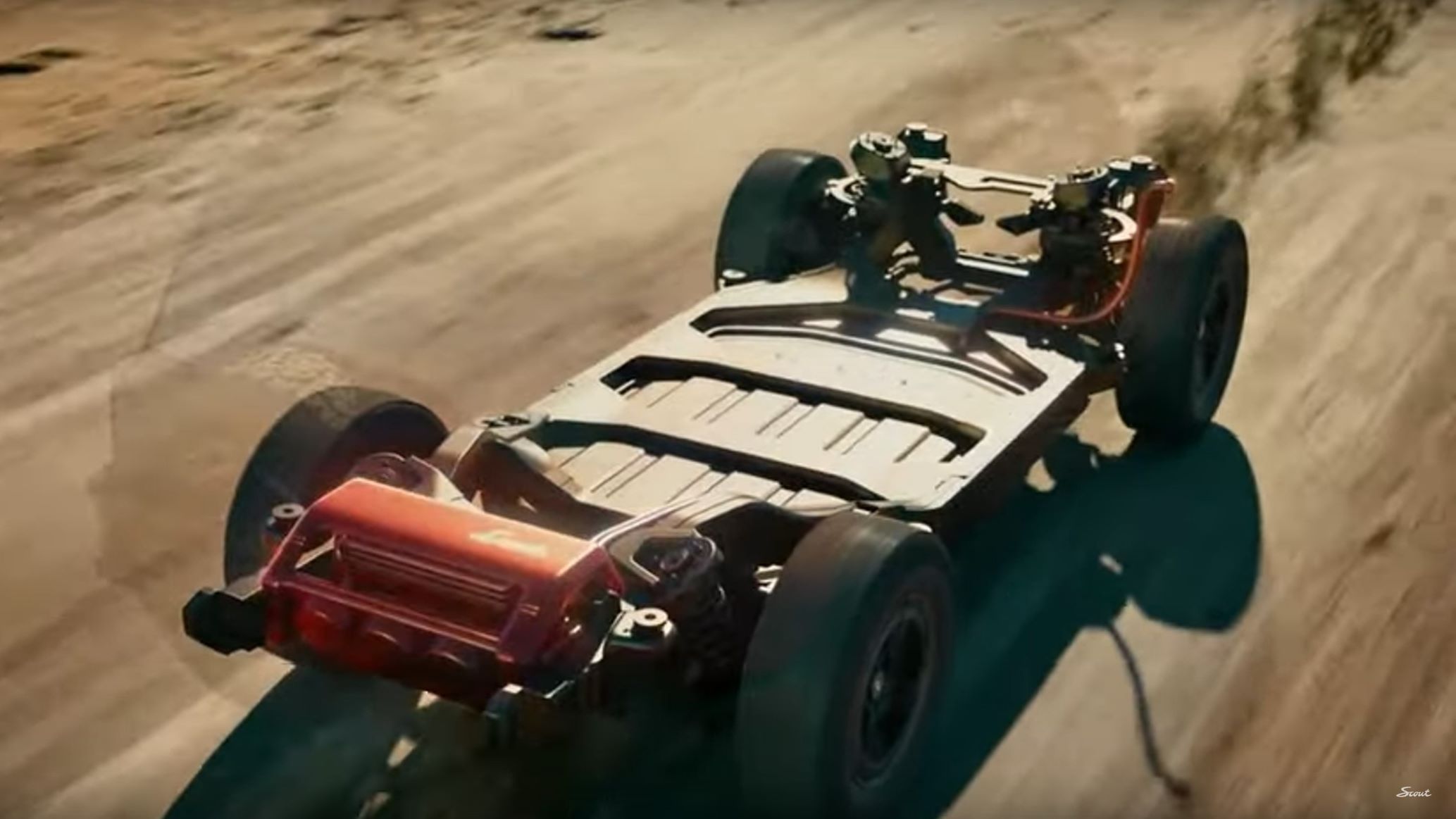 - Scout Traveler frame and solid rear axle.