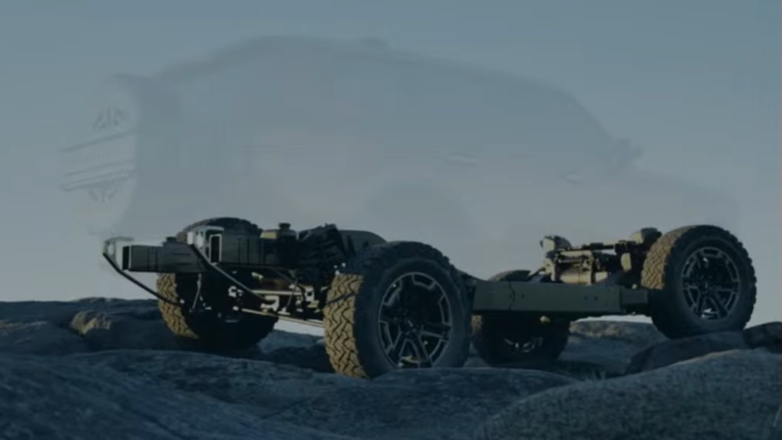 The platform is intended to offer up to 35-in tires and nearly 3 ft (0.9 m) of water-fording capability, “competitive” approach and departure angles, a front sway bar disconnect, front and rear mechanical locking differentials, and available air springs. The mechanical/tactile touch extends to mechanical door handles, grab bars, switches, and dials to provide a “hands-on” user experience.